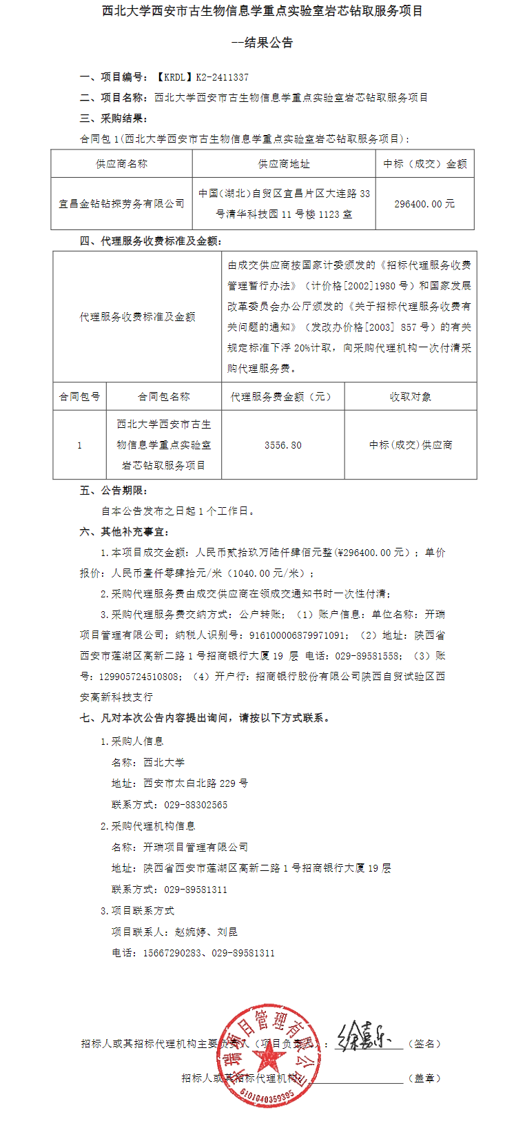 乐鱼网页版页面登录西安市古生物信息学重点实验室岩芯钻取服务项目结果公告