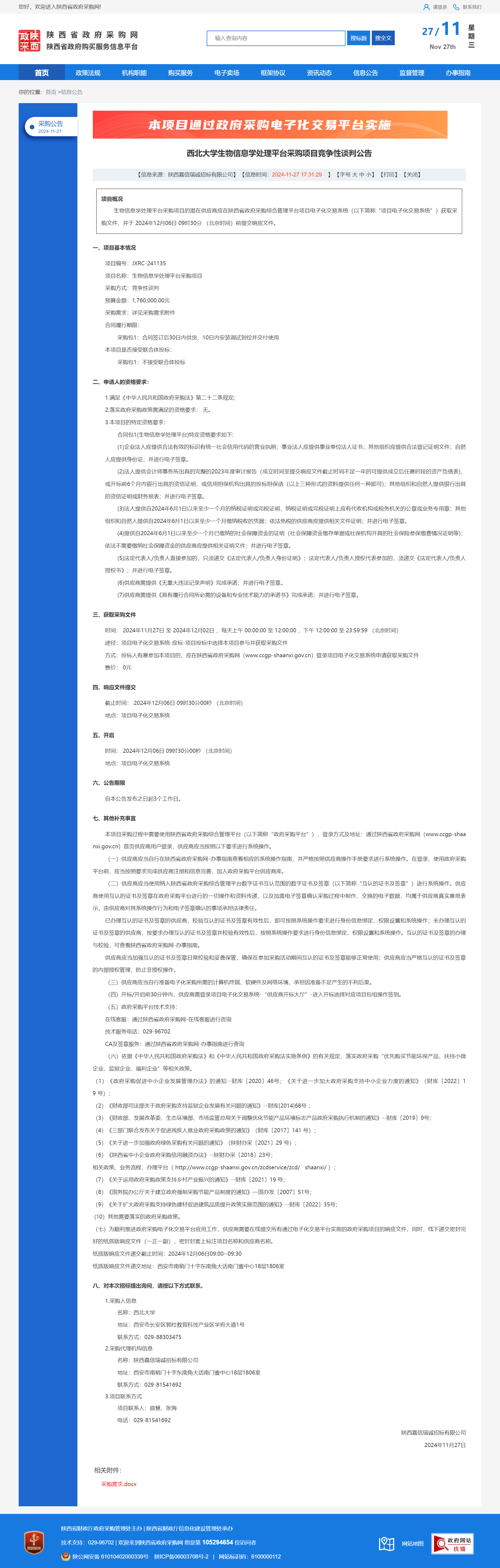 原公告链接:https://www.ccgp-shaanxi.gov.cn/freecms/site/shaanxi/ggxx/info/2024/8a69c2519218573701936ce159174448.html?noticeType=001013¬iceId=f93e2324-aca3-11ef-8063-08c0eb20c666