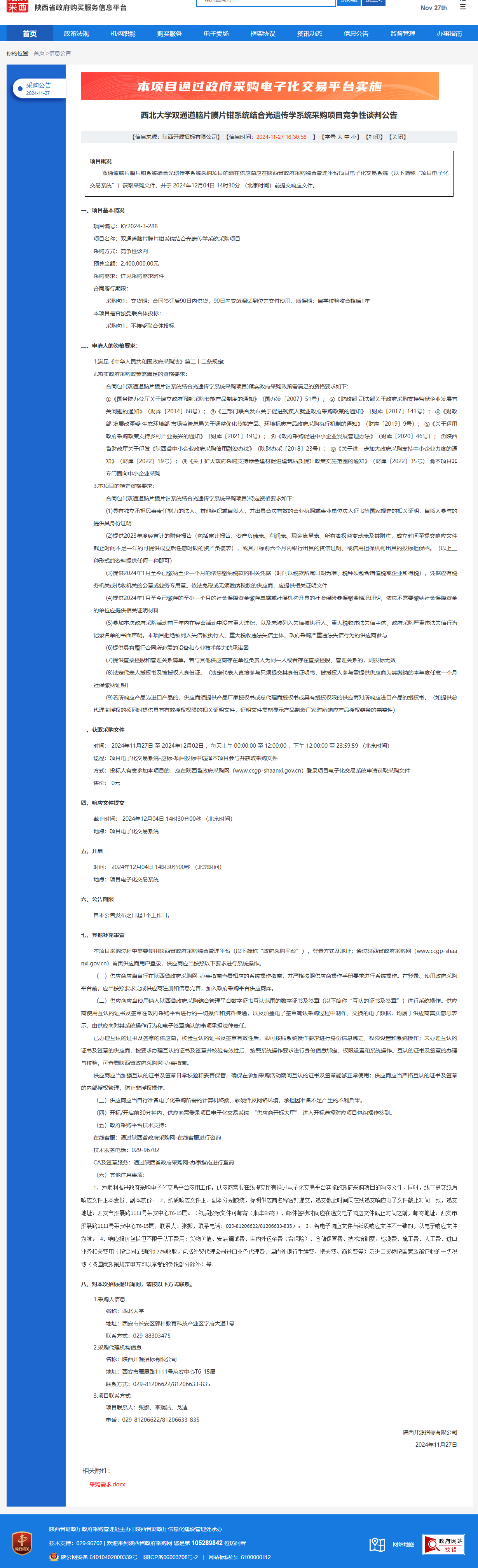 原公告链接:https://www.ccgp-shaanxi.gov.cn/freecms/site/shaanxi/ggxx/info/2024/8a69c2519218573701936cb74b6a2a5b.html?noticeType=001013¬iceId=84c5c1bb-ac9b-11ef-8063-08c0eb20c666