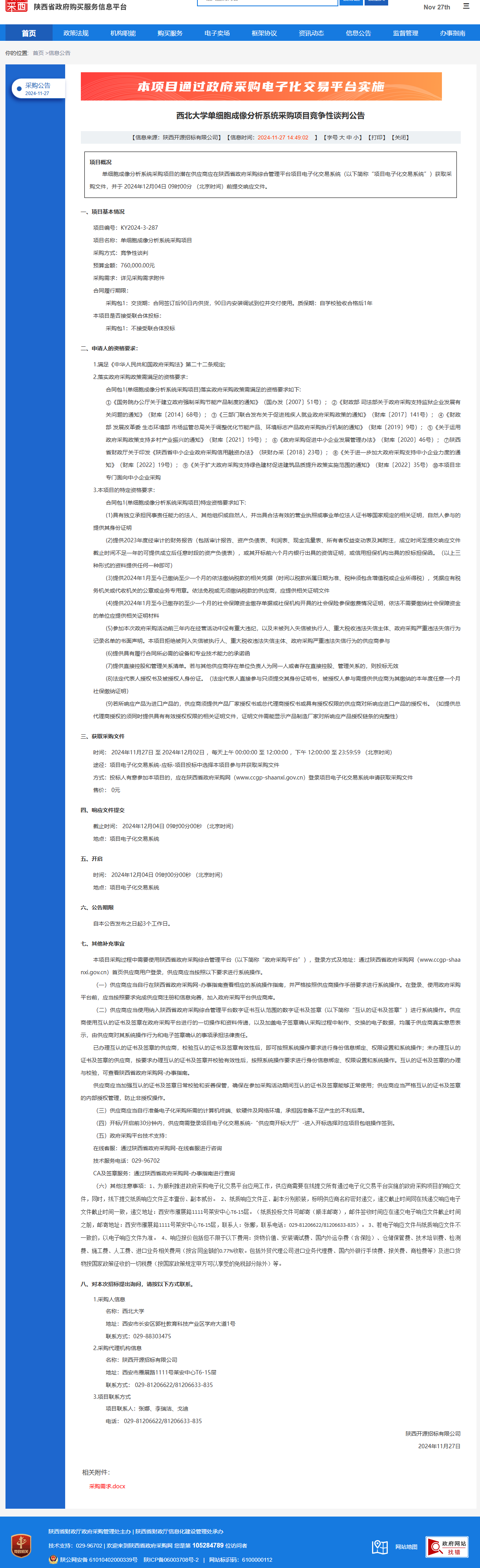 原公告链接:https://www.ccgp-shaanxi.gov.cn/freecms/site/shaanxi/ggxx/info/2024/8a69c44e9218572b01936c491bb73b3e.html?noticeType=001013¬iceId=477c80ef-ac8d-11ef-8063-08c0eb20c666