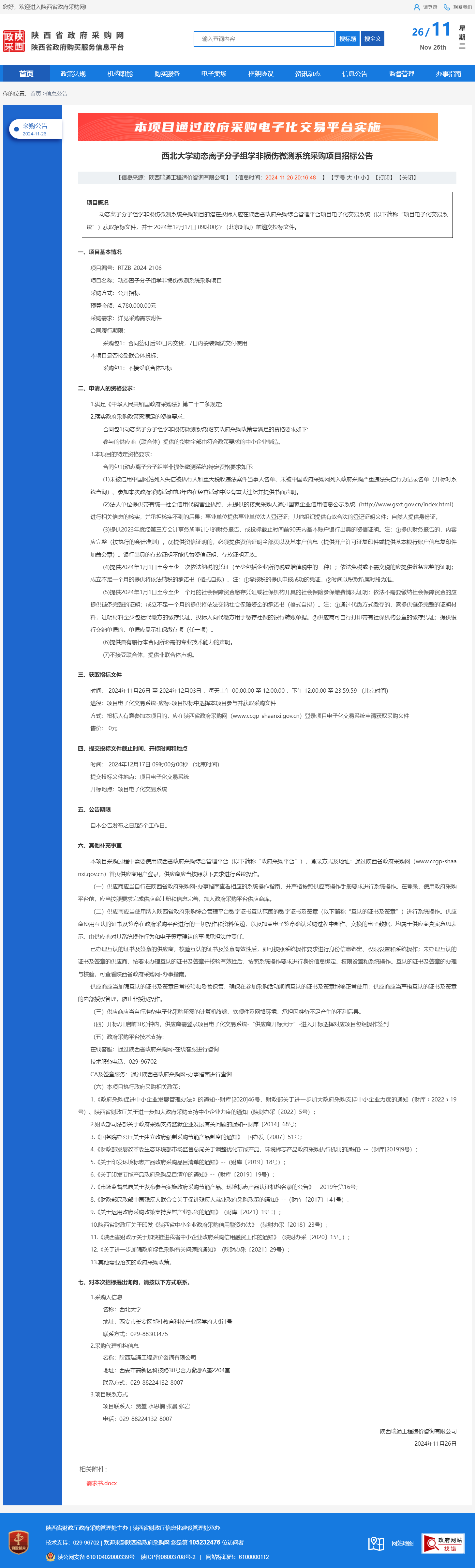 原公告链接:http://www.ccgp-shaanxi.gov.cn/freecms/site/shaanxi/ggxx/info/2024/8a69c95d921859f00193685d31243738.html?noticeType=001011¬iceId=e6602f79-abf1-11ef-8063-08c0eb20c666