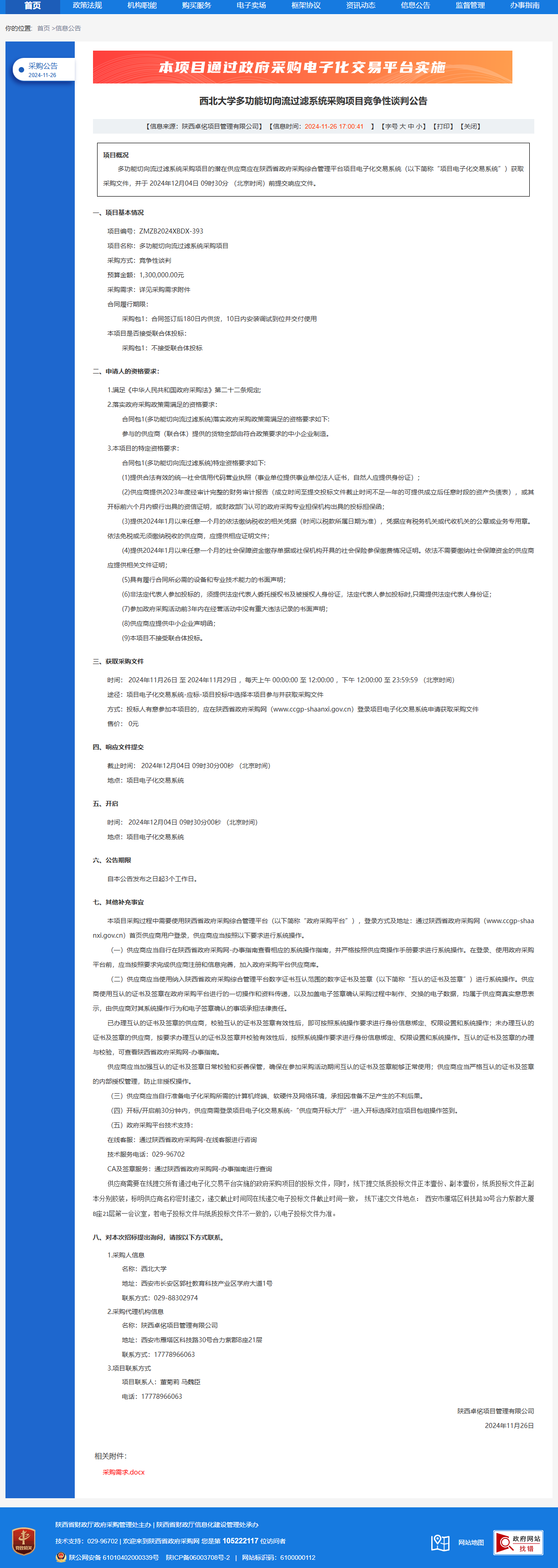 原公告链接:https://www.ccgp-shaanxi.gov.cn/freecms/site/shaanxi/ggxx/info/2024/8a69c44e9218572b0193677ca4876f80.html?noticeType=001013¬iceId=80bc7ae0-abd6-11ef-8063-08c0eb20c666