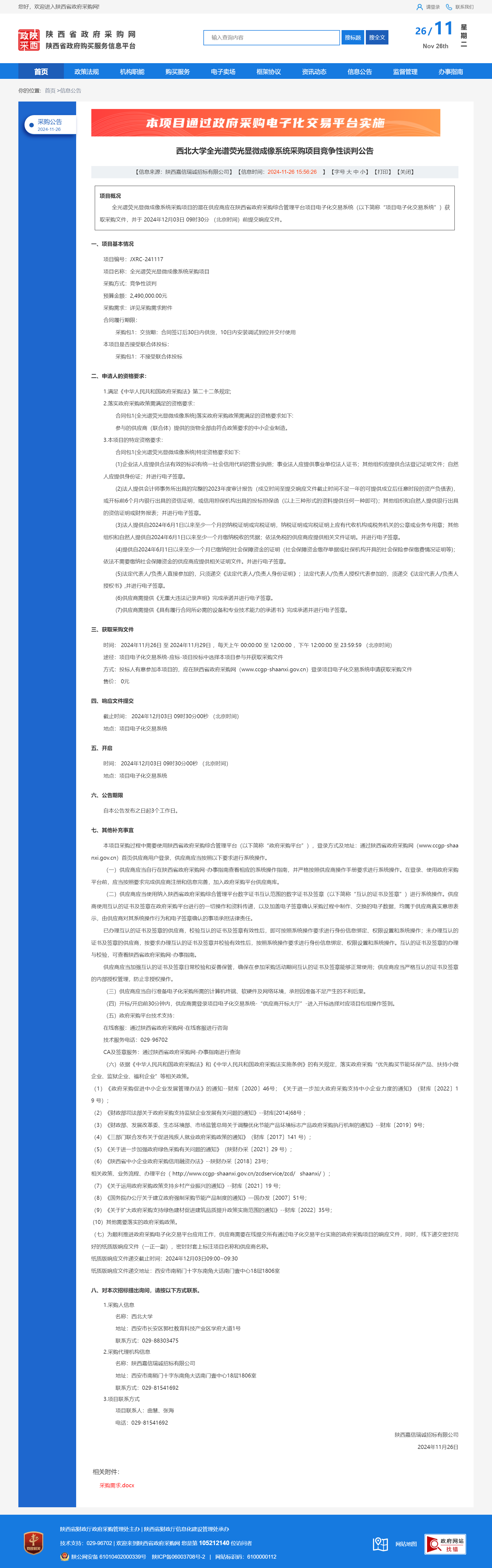 原公告链接:https://www.ccgp-shaanxi.gov.cn/freecms/site/shaanxi/ggxx/info/2024/8a69c95d921859f001936768d6964ed3.html?noticeType=001013¬iceId=86c4a750-abcd-11ef-8063-08c0eb20c666
