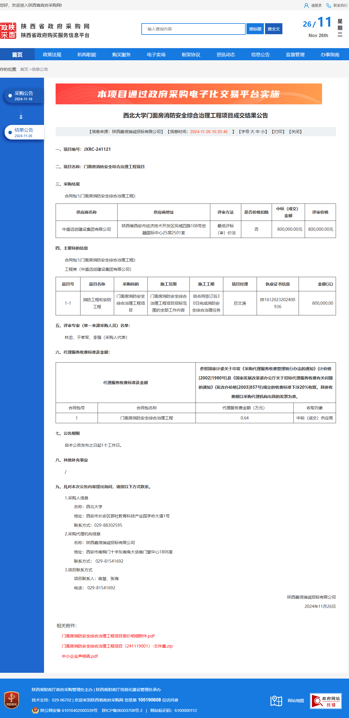 乐鱼网页版页面登录后勤集团三校区消防安全综合治理工程成交结果公告