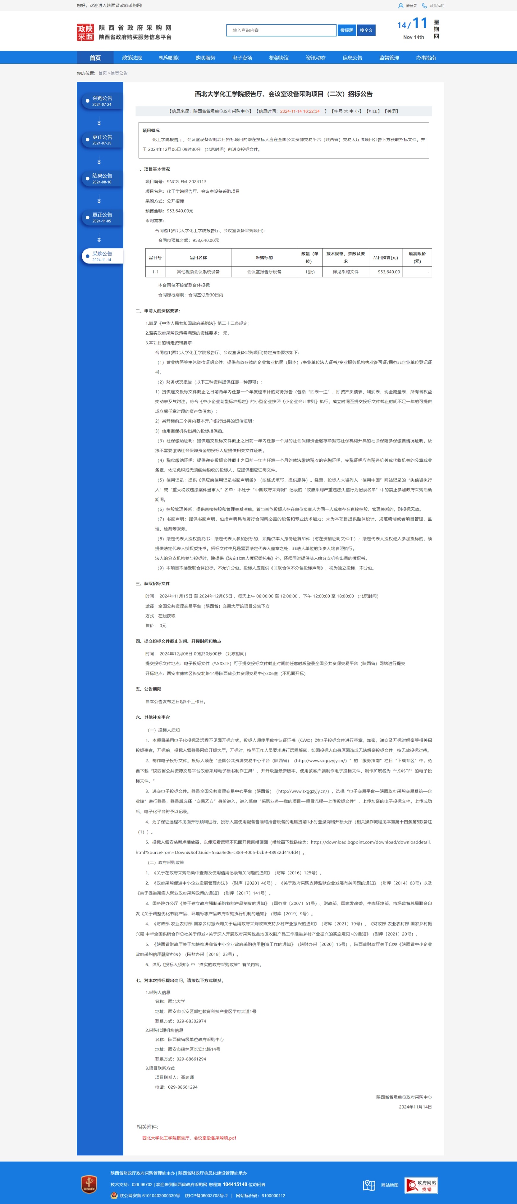 原公告链接:https://www.ccgp-shaanxi.gov.cn/freecms/site/shaanxi/ggxx/info/2024/8a69c44e9218572b0193285a44d64ac8.html?noticeType=001011¬iceId=2affca7b-a263-11ef-8063-08c0eb20c666
