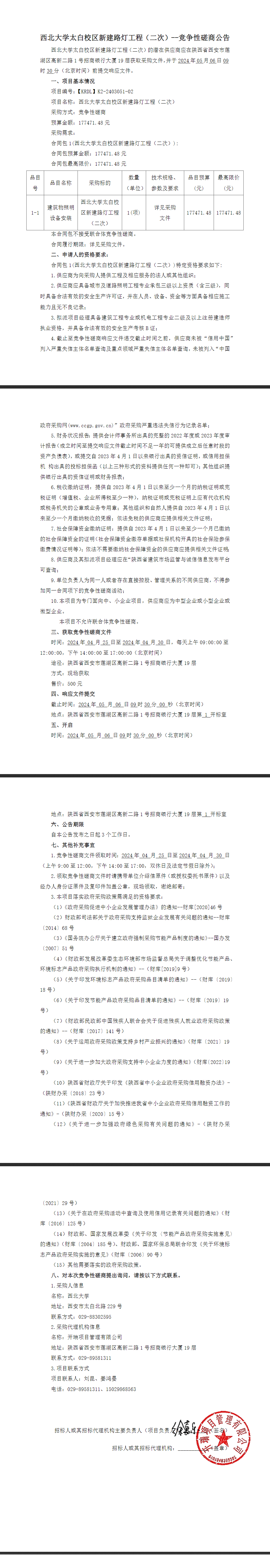 乐鱼网页版页面登录太白校区新建路灯工程(二次)竞争性磋商公告