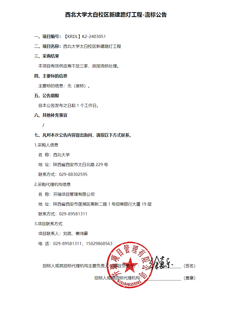 乐鱼网页版页面登录太白校区新建路灯工程流标公告