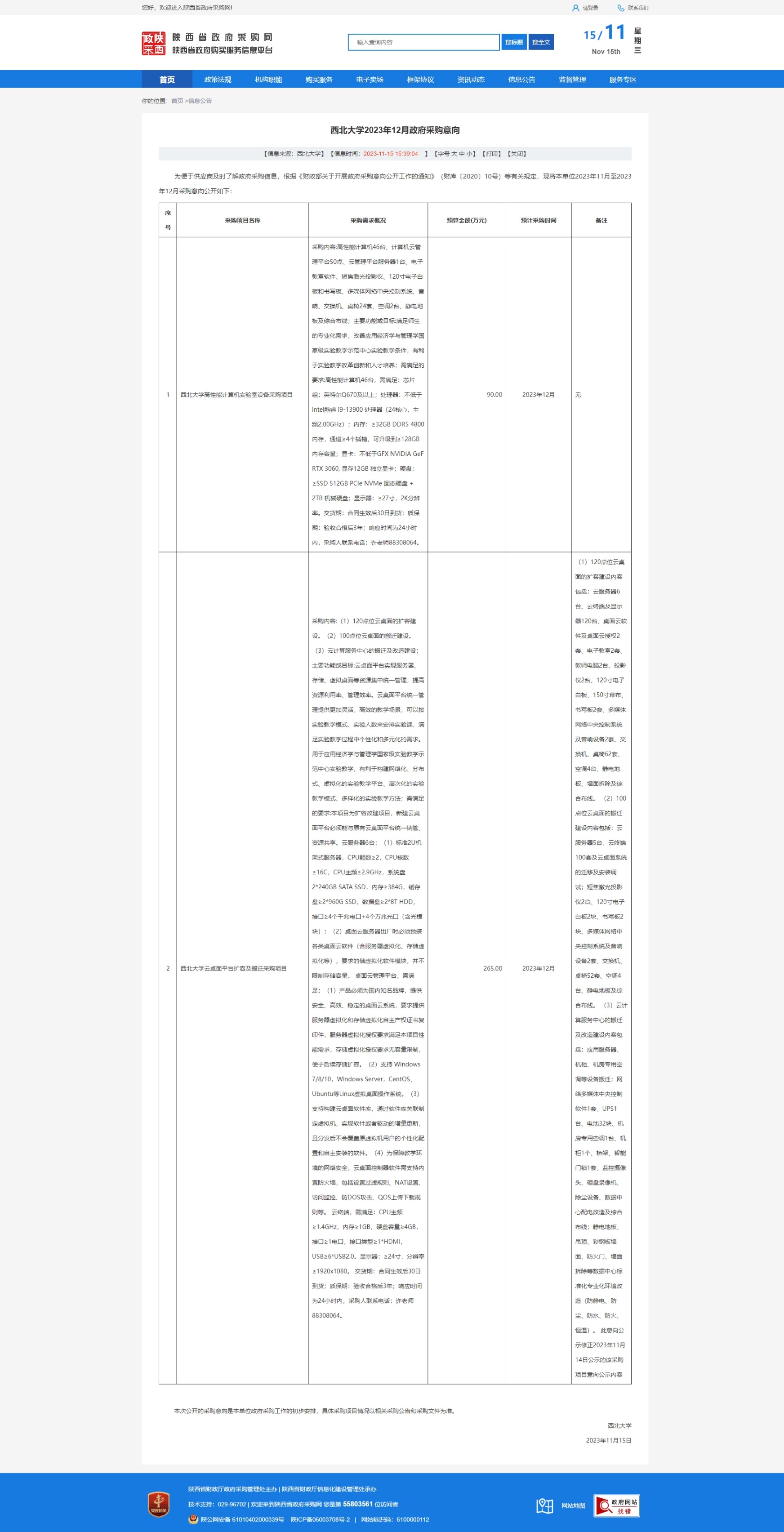 原公告链接:http://www.ccgp-shaanxi.gov.cn/freecms/site/shaanxi/ggxx/info/2023/8a69c2728bccc23e018bd1b3df996cd5.html?noticeType=59¬iceId=63f8348a-838b-11ee-9a8e-08c0eb20c666