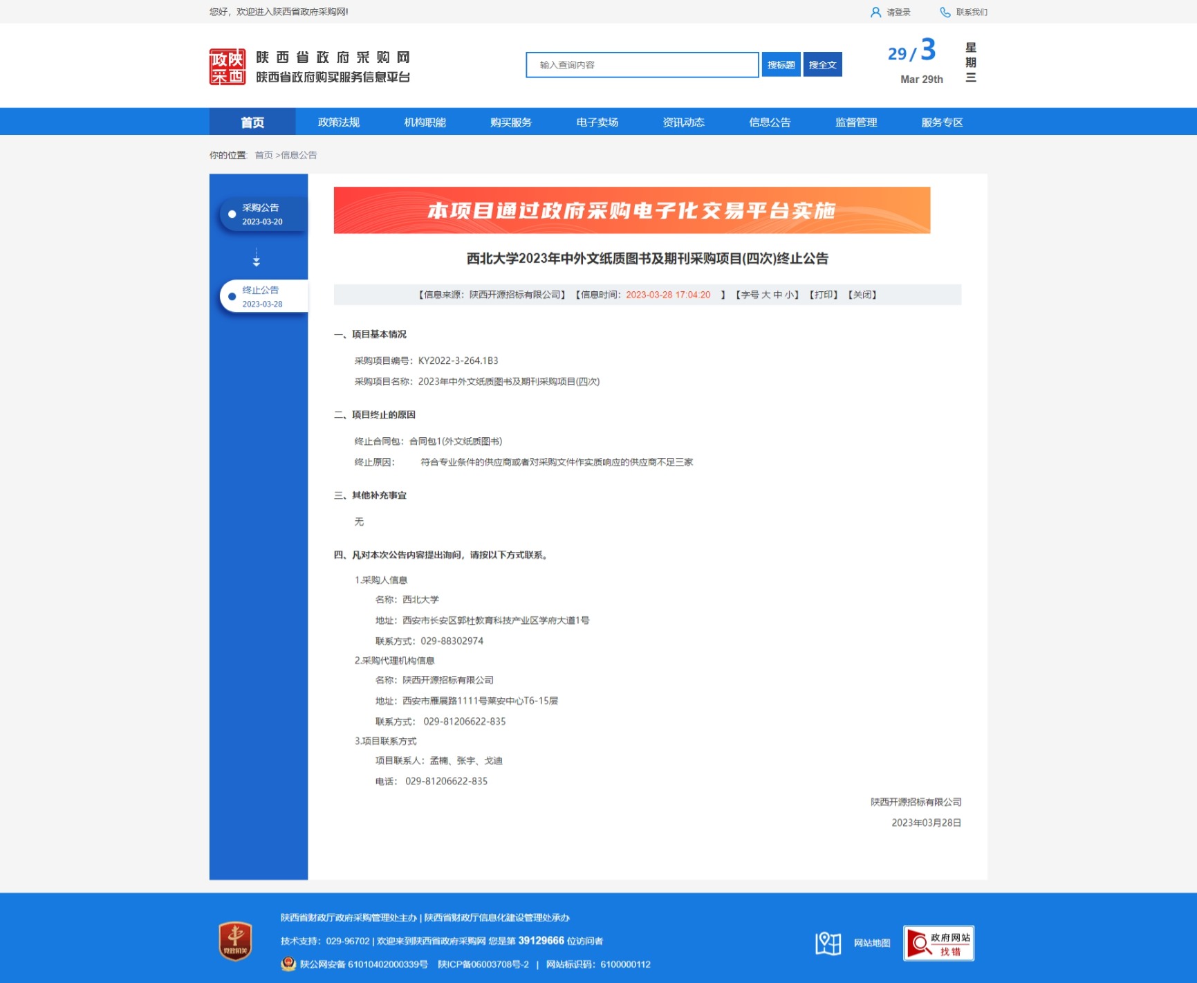 原公告链接:http://www.ccgp-shaanxi.gov.cn/freecms/site/shaanxi/ggxx/info/2023/8a69c402865ce80c0187274b628268bb.html?noticeType=001004¬iceId=705c8589-cd48-11ed-9a8e-08c0eb20c666