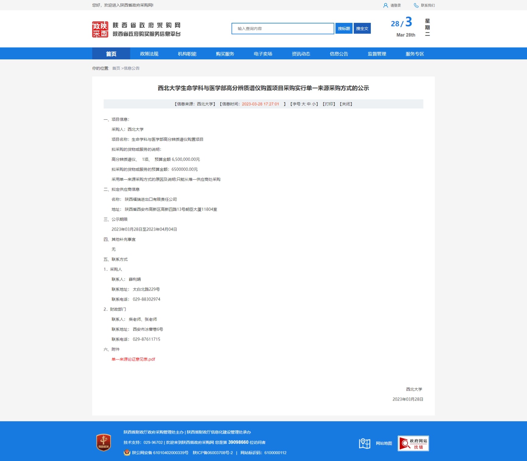 原公告链接:http://www.ccgp-shaanxi.gov.cn/freecms/site/shaanxi/ggxx/info/2023/8a69c2018721d9cb018726d4460d78d5.html?noticeType=001051¬iceId=9b938696-cd4b-11ed-9a8e-08c0eb20c666