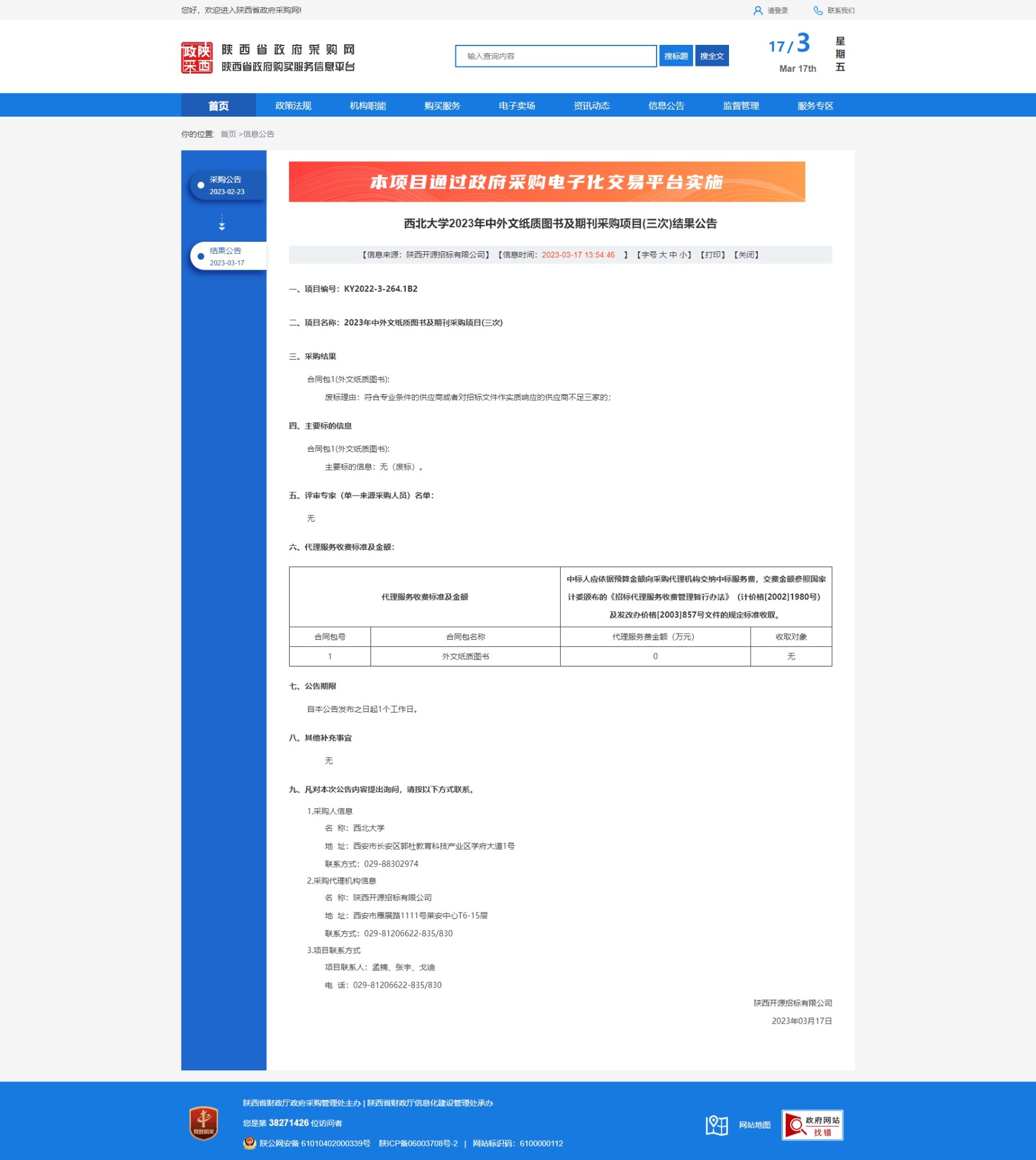 原公告链接:http://www.ccgp-shaanxi.gov.cn/freecms/site/shaanxi/ggxx/info/2023/8a69c883865ceb1d0186e9379cdc32d9.html?noticeType=001006¬iceId=1bf9b858-c489-11ed-9a8e-08c0eb20c666