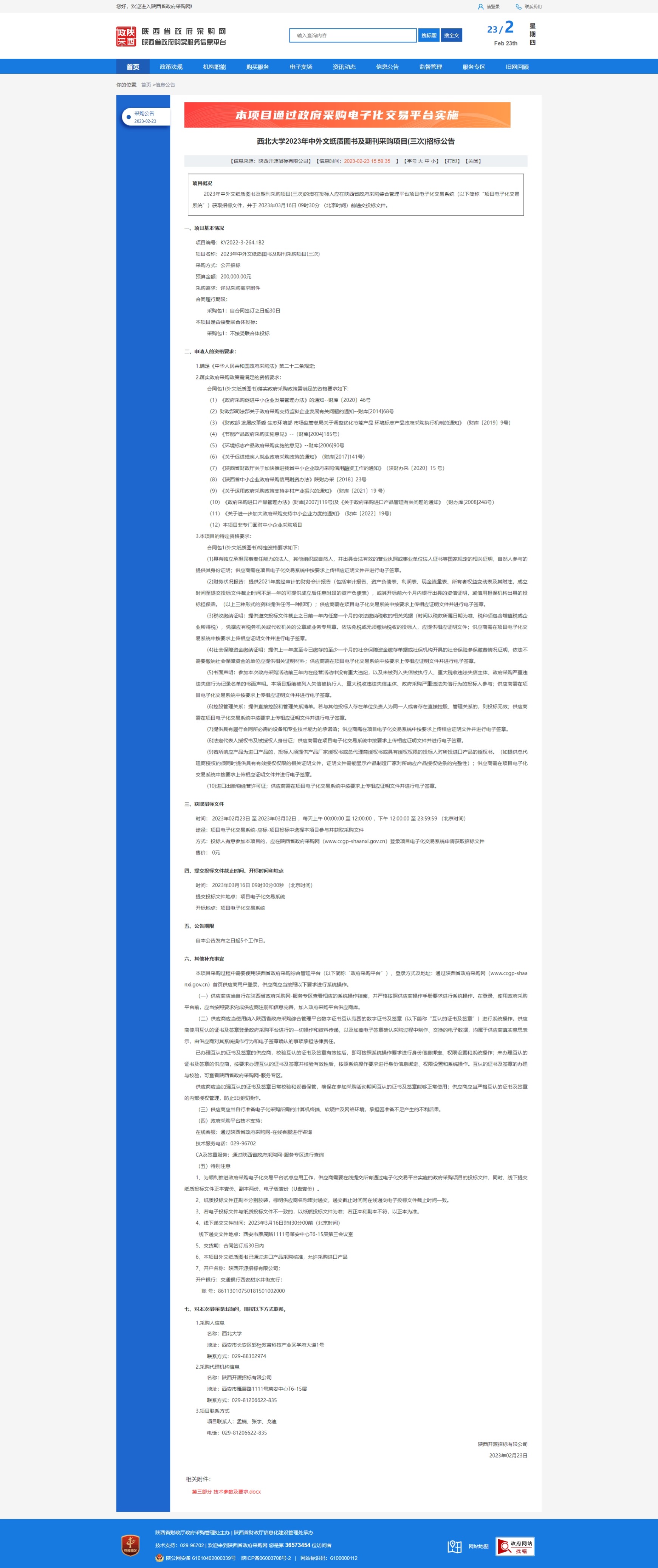 原公告链接:http://www.ccgp-shaanxi.gov.cn/freecms/site/shaanxi/ggxx/info/2023/8a69c672865ced8c01867d3e22983dee.html?noticeType=001011¬iceId=de2454c9-b350-11ed-9a8e-08c0eb20c666
