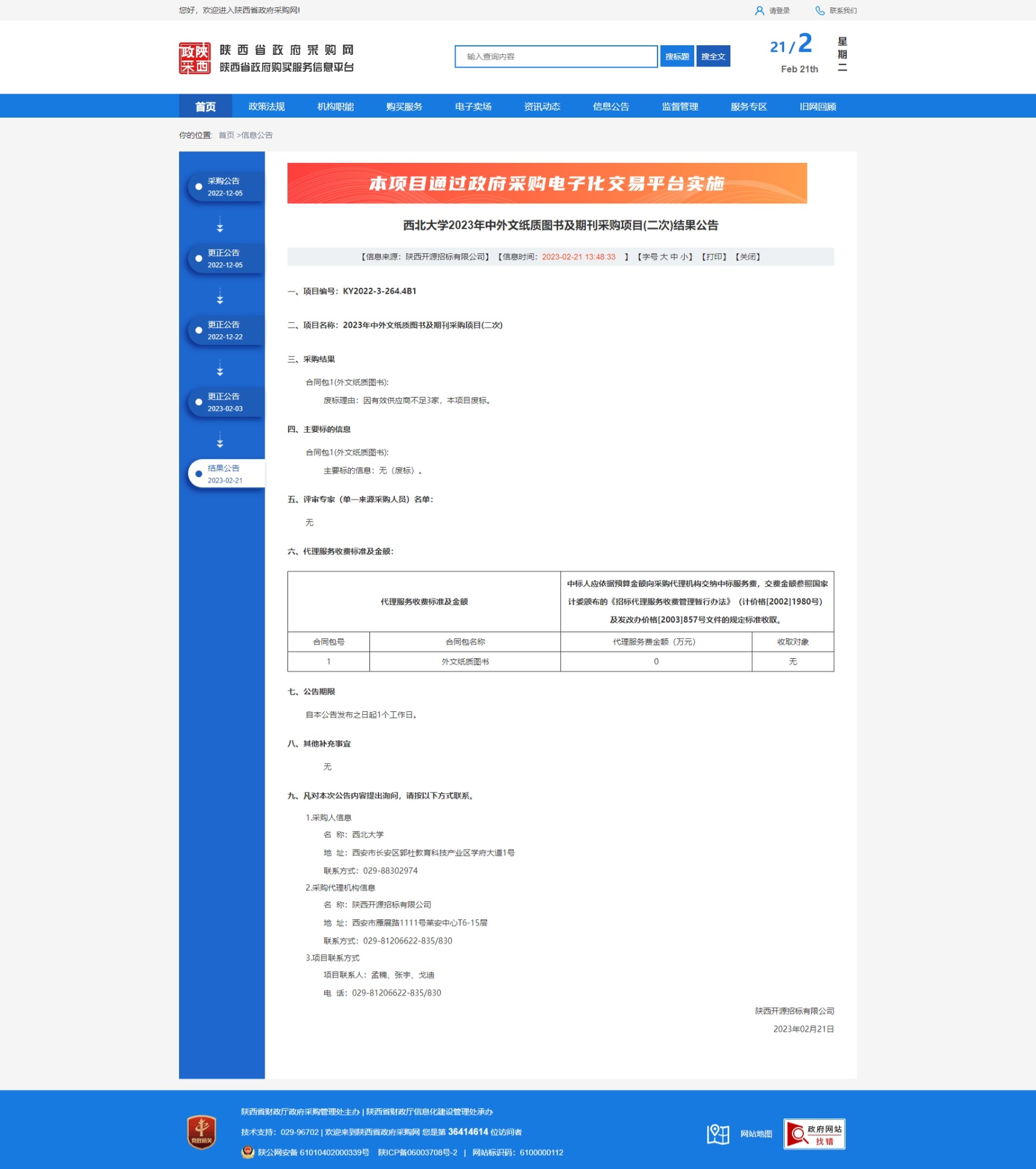 原公告链接:http://www.ccgp-shaanxi.gov.cn/freecms/site/shaanxi/ggxx/info/2023/8a69c672865ced8c0186724a037f638f.html?noticeType=001006¬iceId=37842b27-b1ac-11ed-9a8e-08c0eb20c666