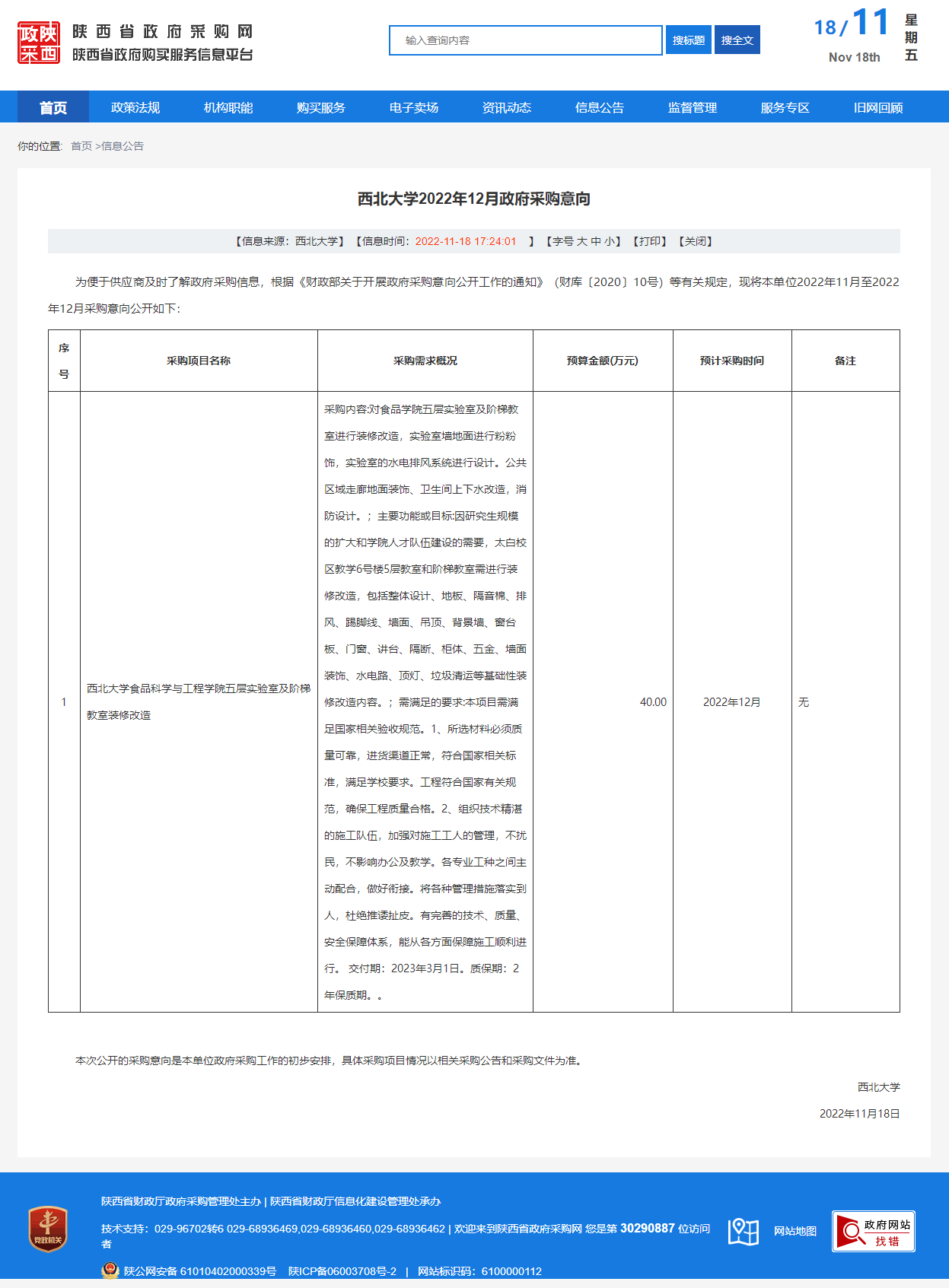 乐鱼网页版页面登录2022年12月政府采购意向
