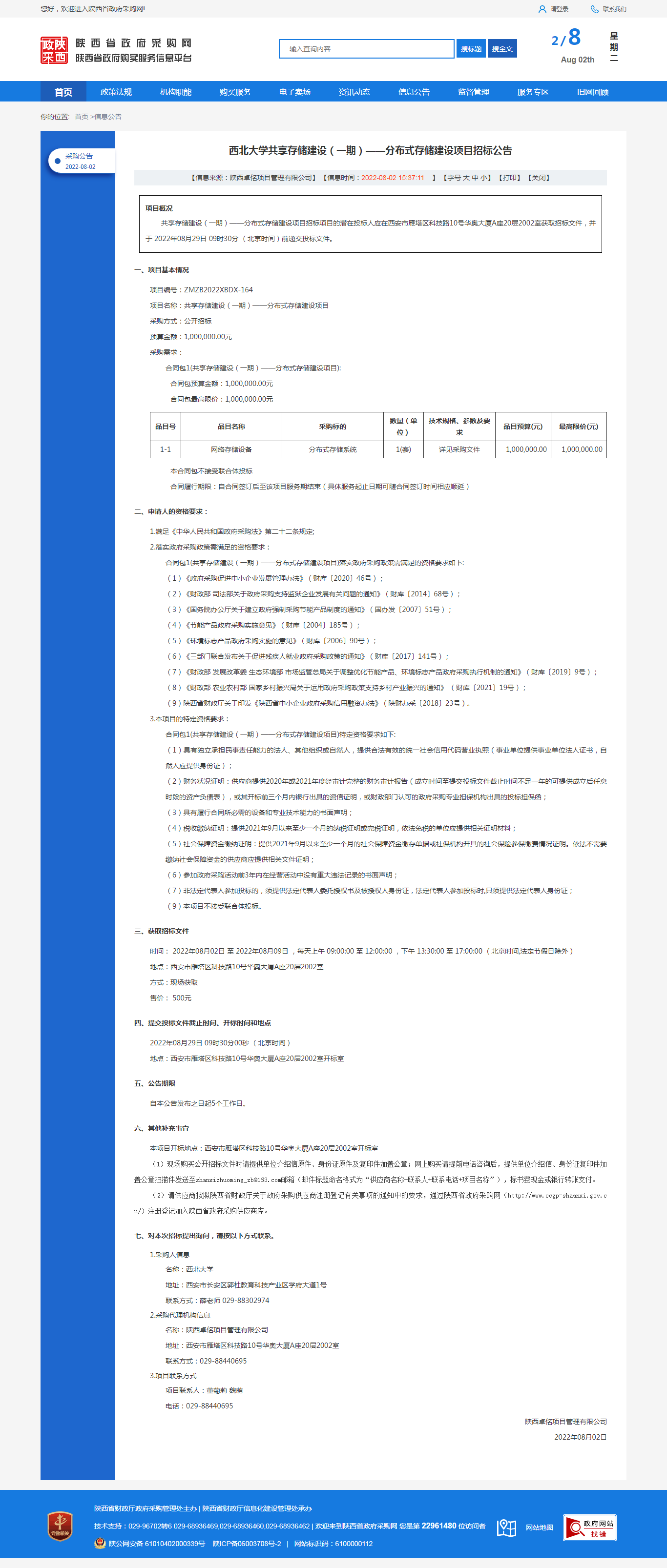 原公告链接:http://www.ccgp-shaanxi.gov.cn/freecms/site/shaanxi/ggxx/info/2022/8a69c8308238f00301825cf936ec1904.html?noticeType=001011¬iceId=565bf0b7-1236-11ed-9a8e-08c0eb20c666