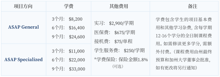 (1)一学期的ASAP课程长度为10周,每学期可修读12-16个学分。参项学生可连续修读3学期,最高可获得48个学分。