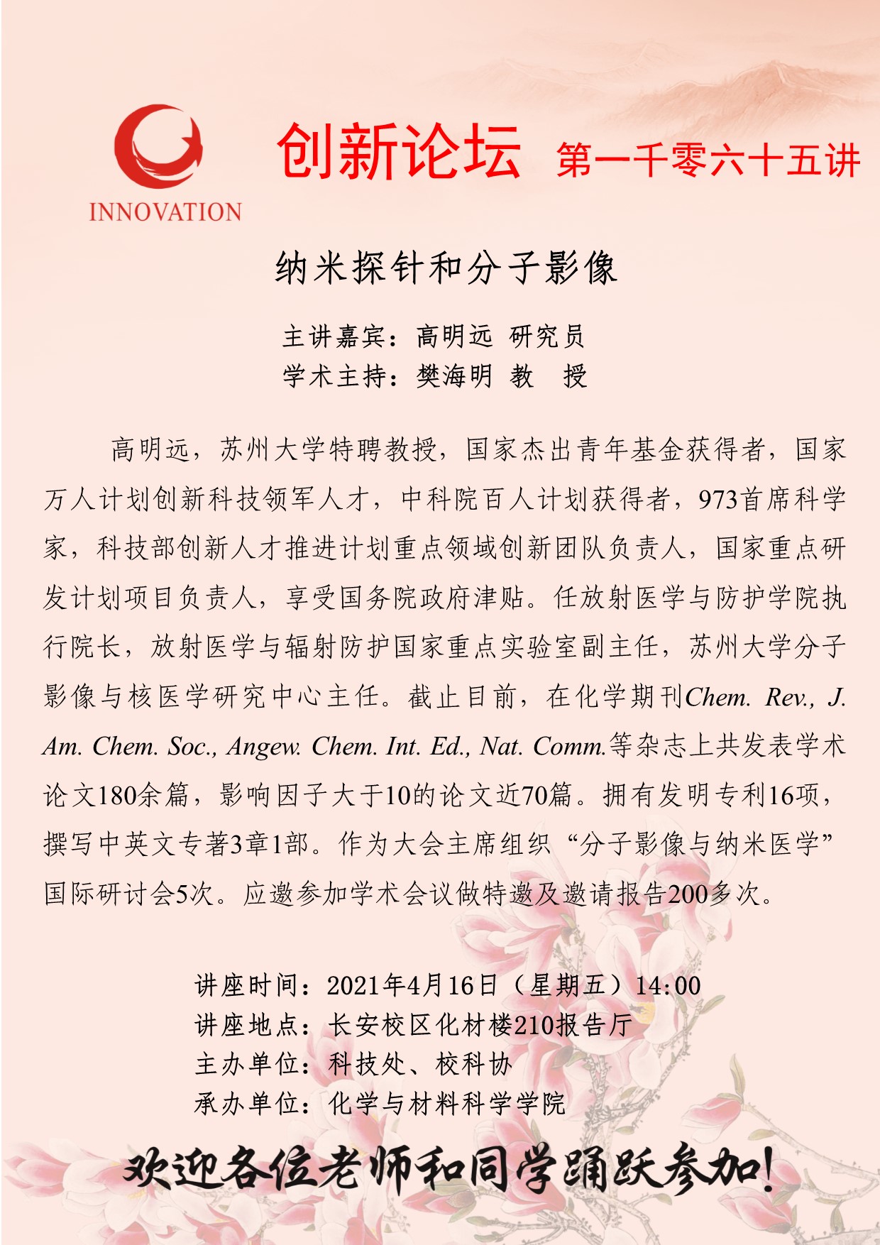 创新论坛第一千零六十五讲:纳米探针和分子影像