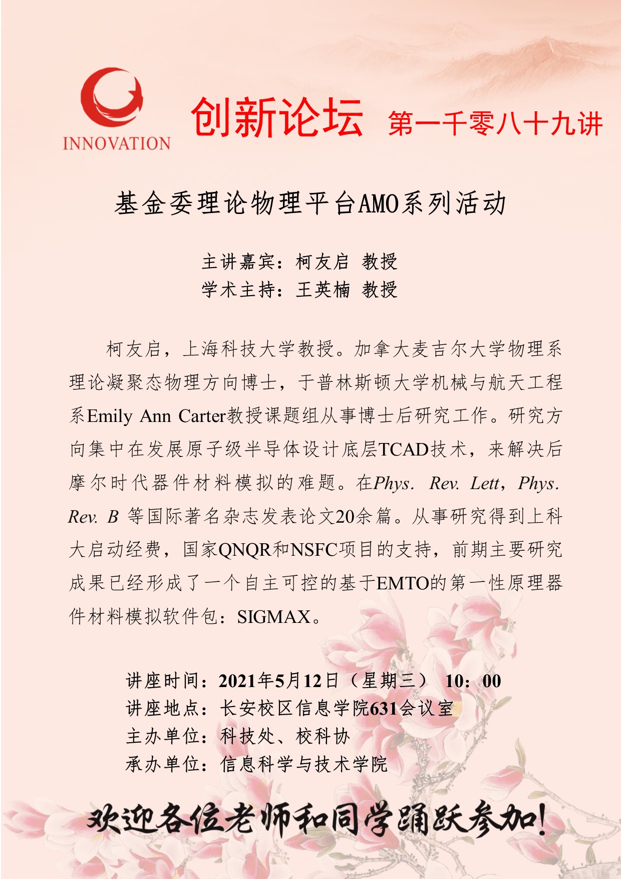 柯友启 教授 乐鱼网页版页面登录创新论坛第一千零八十九讲:基金委理论物理平台AMO系列活动 讲座时间 2021年5月12日(星期三) 10:00 讲座地点 长安校区信息学院631会议室 讲座人介绍 柯友启 教授 讲座内容