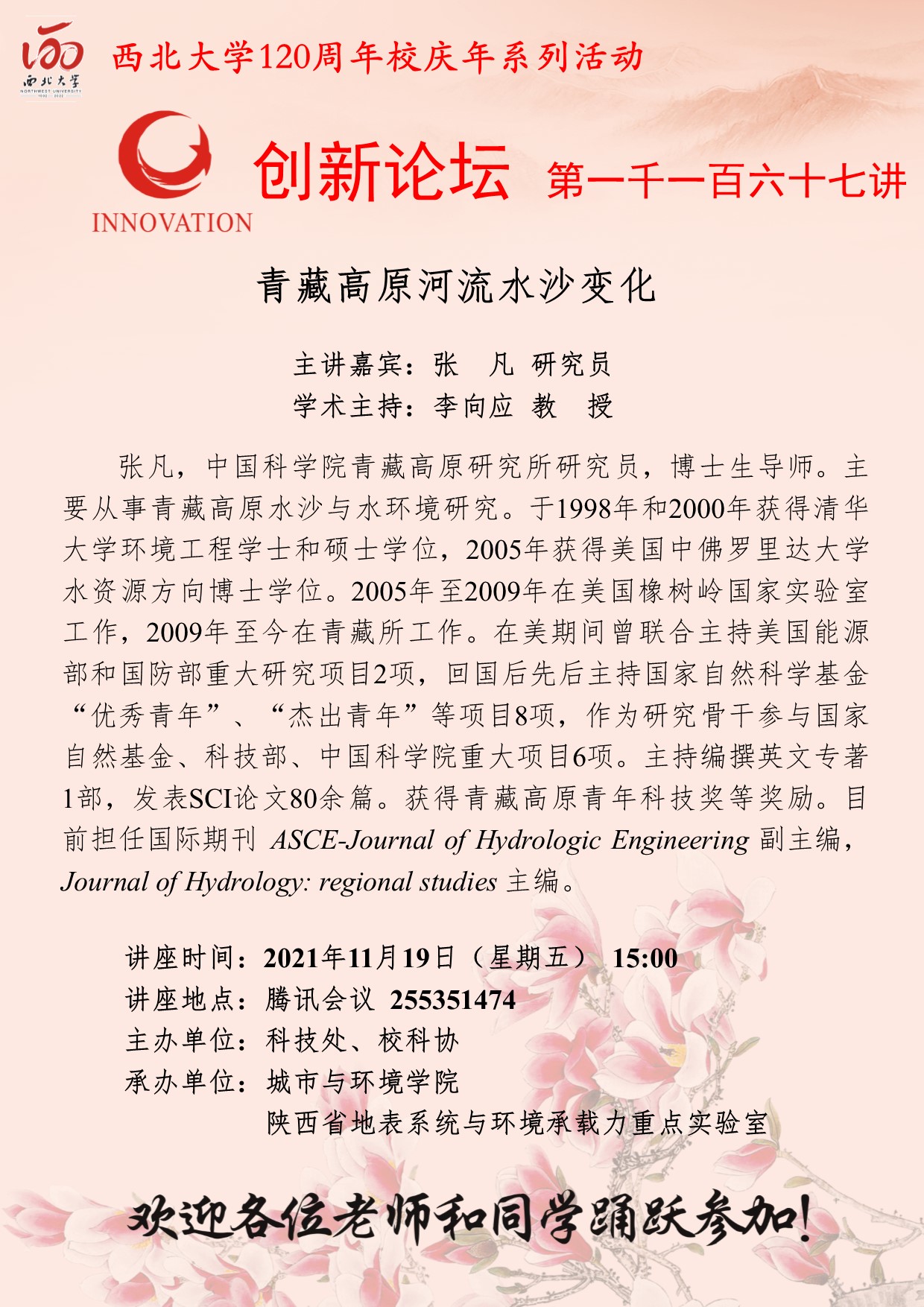 张凡 研究员 乐鱼网页版页面登录创新论坛第一千一百六十七讲暨120周年校庆年系列活动:青藏高原河流水沙变化 讲座时间 2021年11月19日(星期五) 15:00 讲座地点 腾讯会议 255351474 讲座人介绍 张凡 研究员 讲座内容