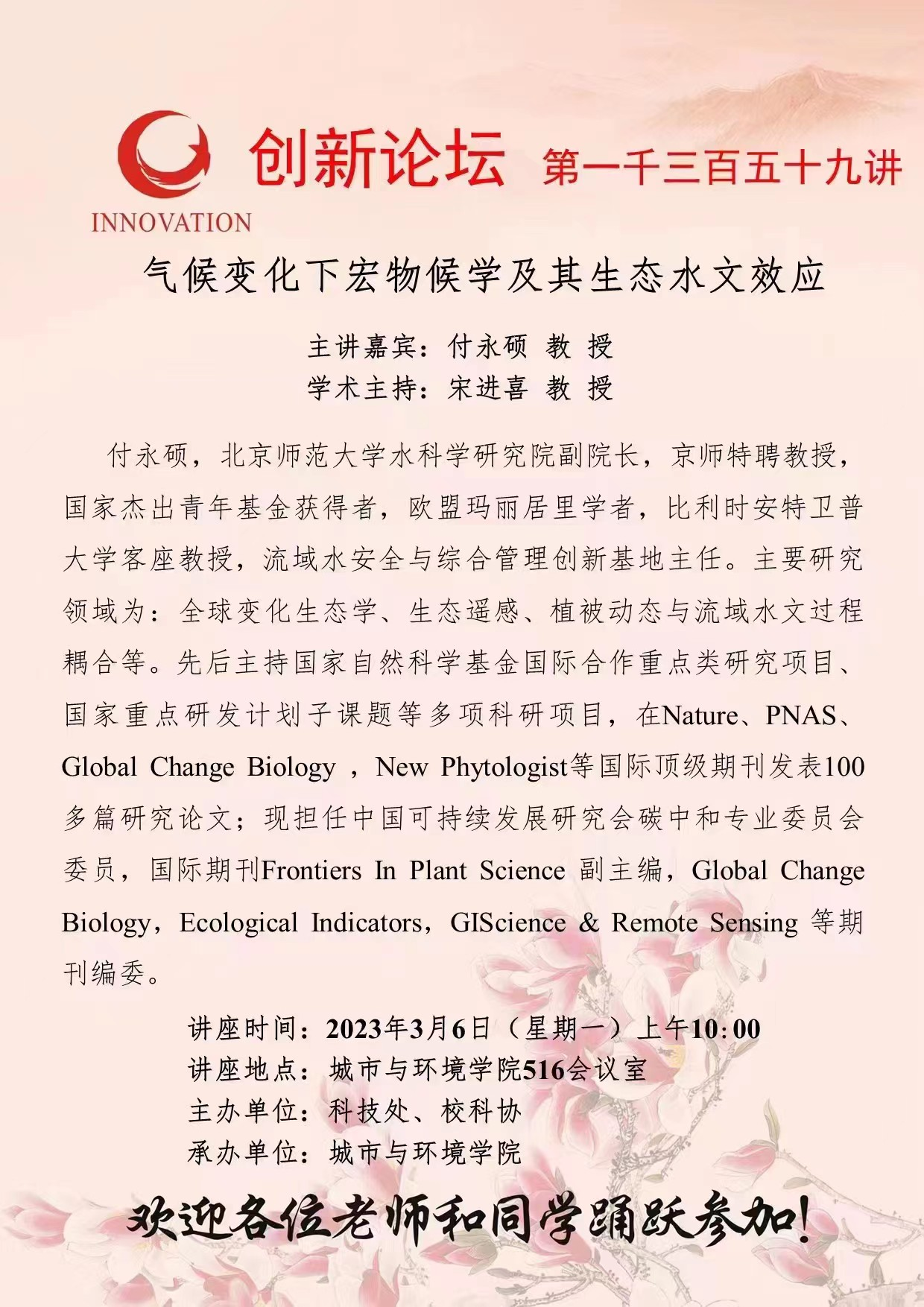 乐鱼网页版页面登录创新论坛第一千三百五十九讲:气候变化下宏物候学及生态水文效应