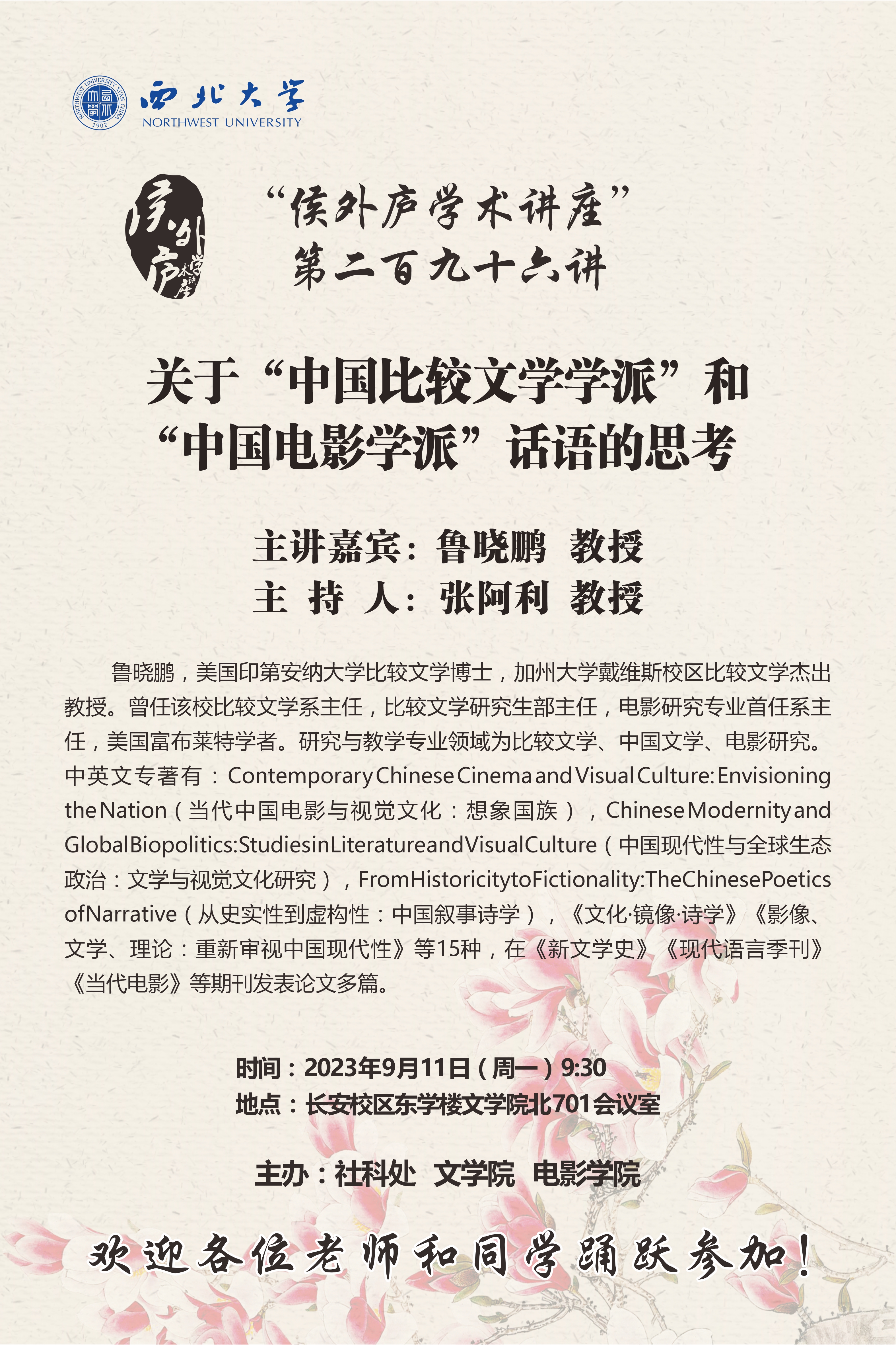 侯外庐学术讲座第二百九十六讲:关于“中国比较文学学派”和“中国电影学派”话语的思考