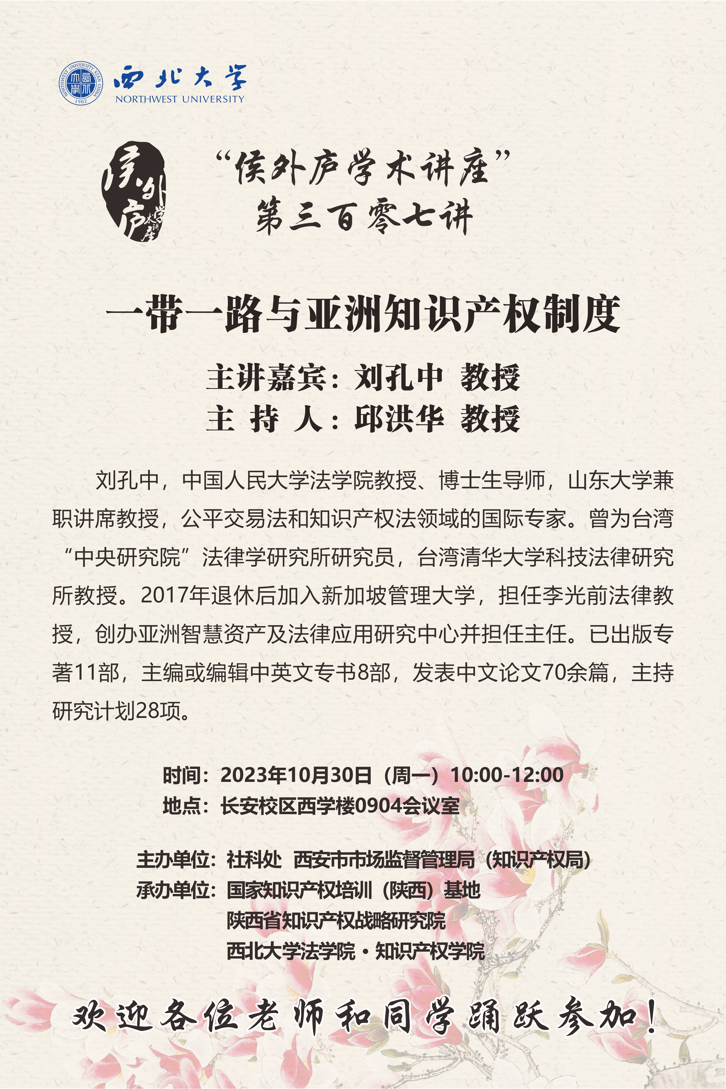 侯外庐学术讲座第三百零七讲:一带一路与亚洲知识产权制度
