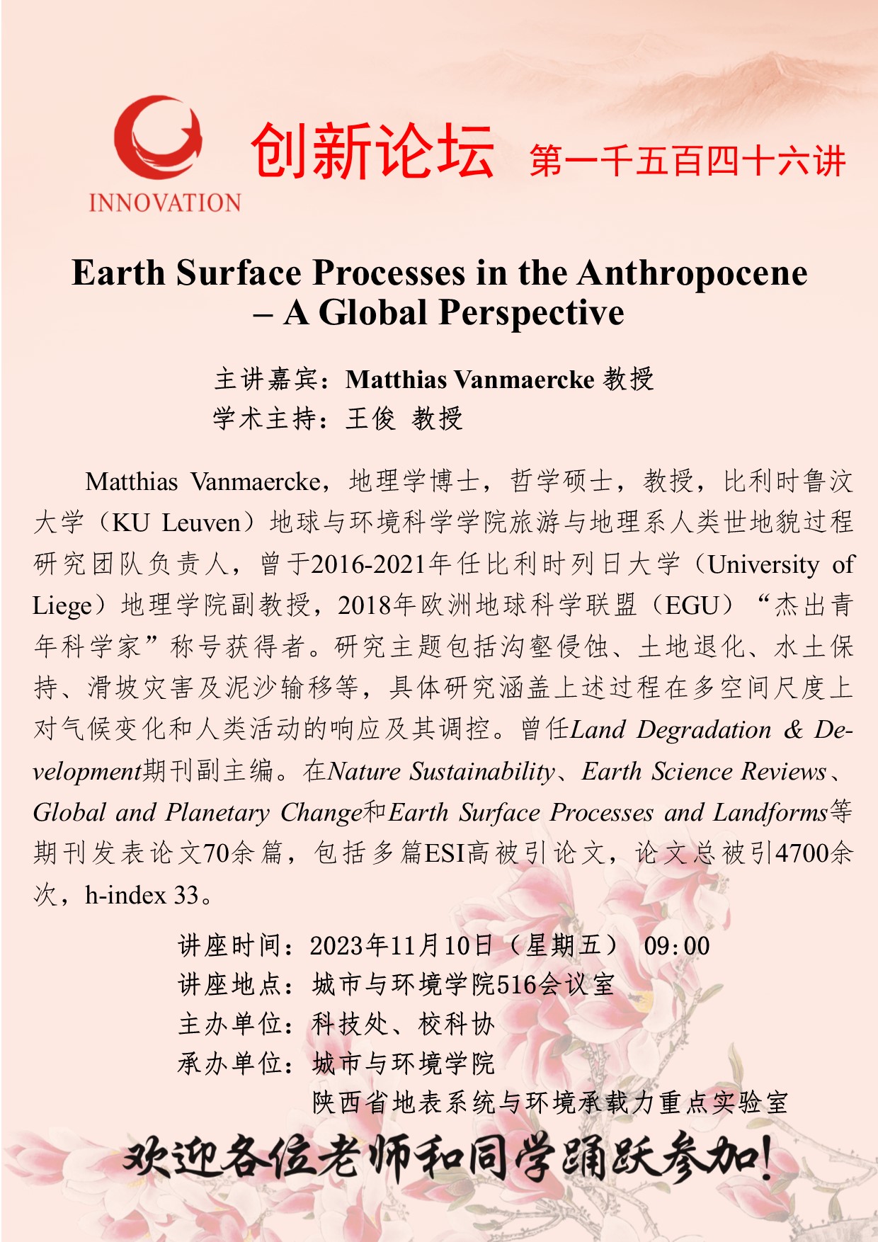 Matthias Vanmaercke 教授 乐鱼网页版页面登录创新论坛第一千五百四十六讲:Earth Surface Processes in the Anthropocene – A Global Perspective 讲座时间 2023年11月10日(星期五) 09:00 讲座地点 城市与环境学院516会议室 讲座人介绍 Matthias Vanmaercke 教授 讲座内容