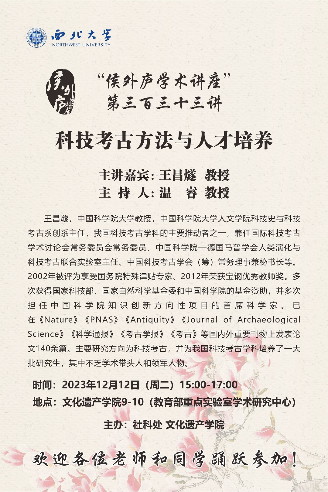 侯外庐学术讲座第三百三十三讲:科技考古方法与人才培养
