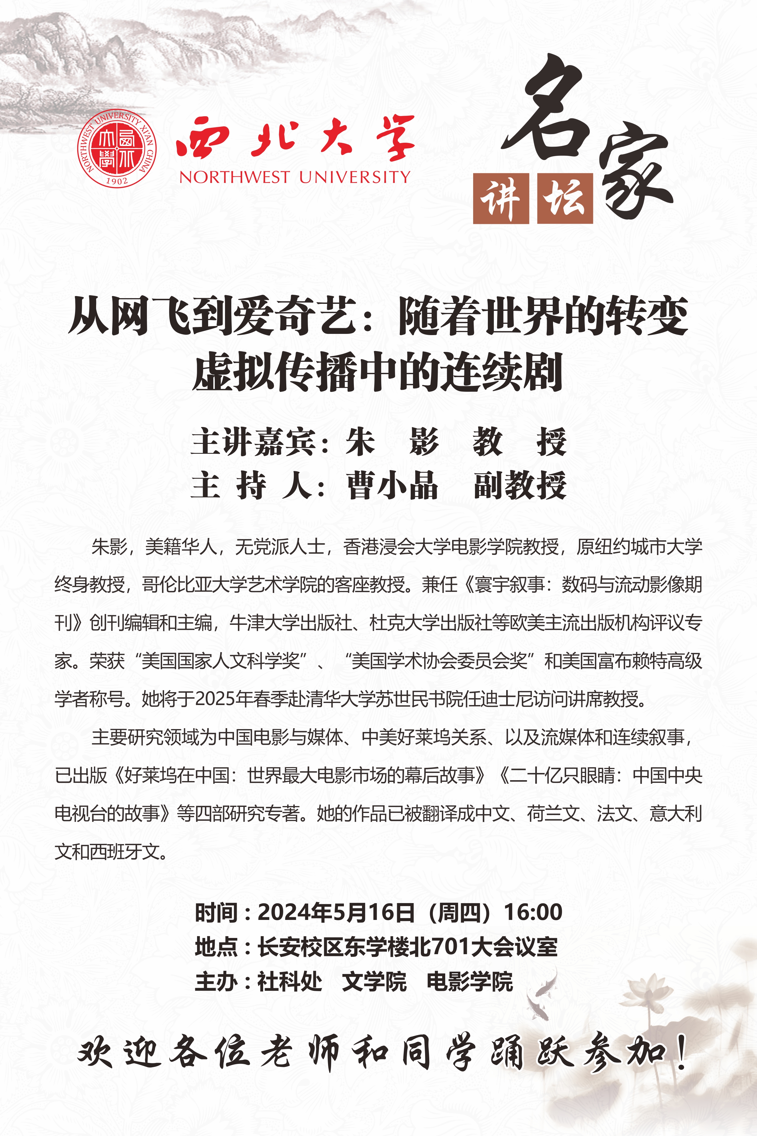 名家讲坛:从网飞到爱奇艺:随着世界的转变虚拟传播中的连续剧