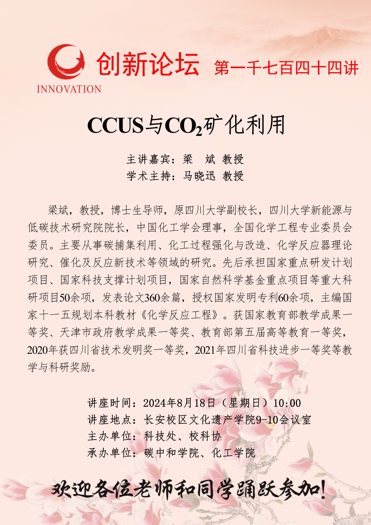 梁斌 教授 乐鱼网页版页面登录创新论坛第一千七百四十四讲:CCUS与CO2矿化利用 讲座时间 2024年8月18日(星期日)10:00 讲座地点 长安校区文化遗产学院9-10会议室 讲座人介绍 梁斌 教授 讲座内容