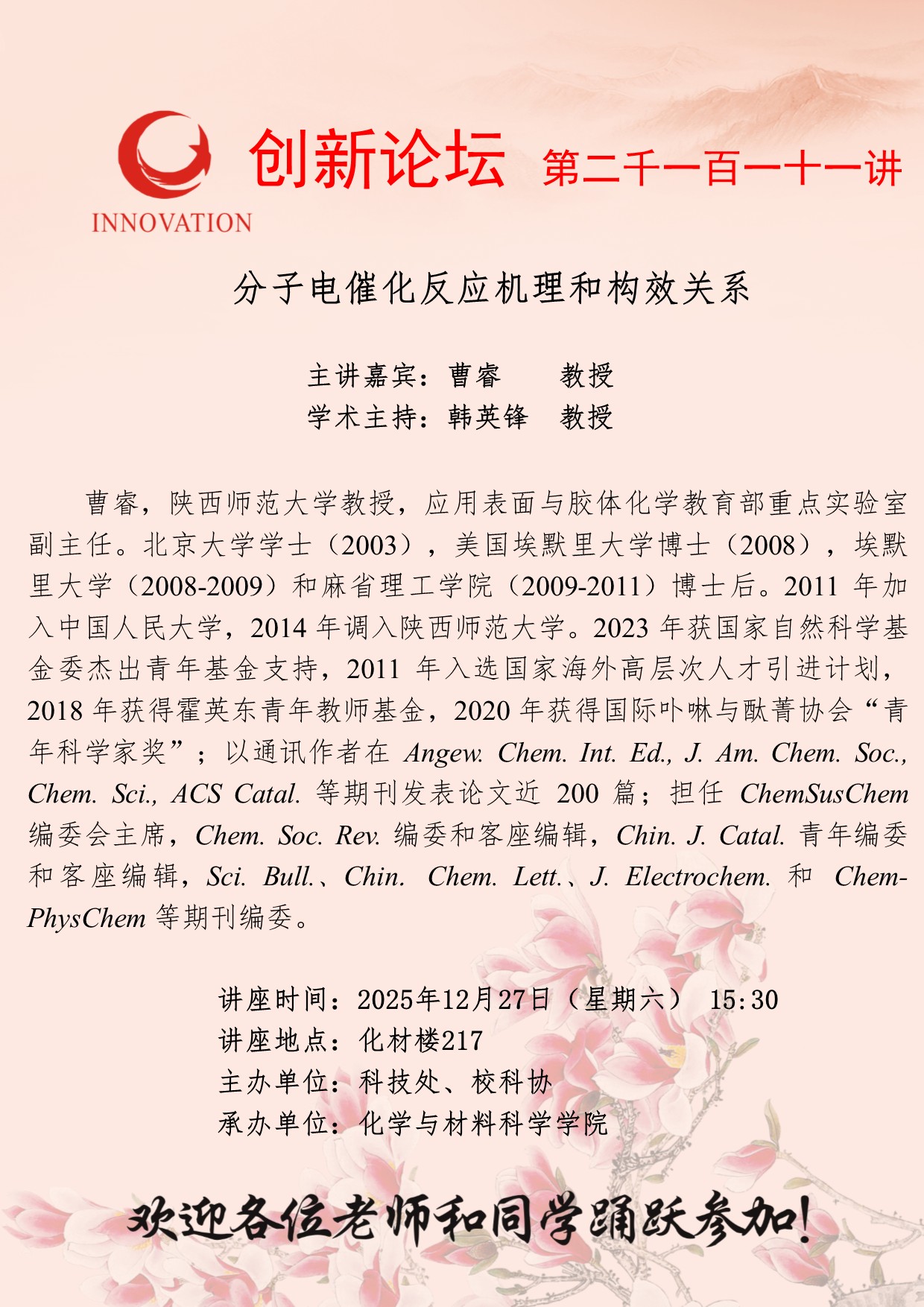 乐鱼网页版页面登录创新论坛第二千一百一十一讲:分子电催化反应机理和构效关系