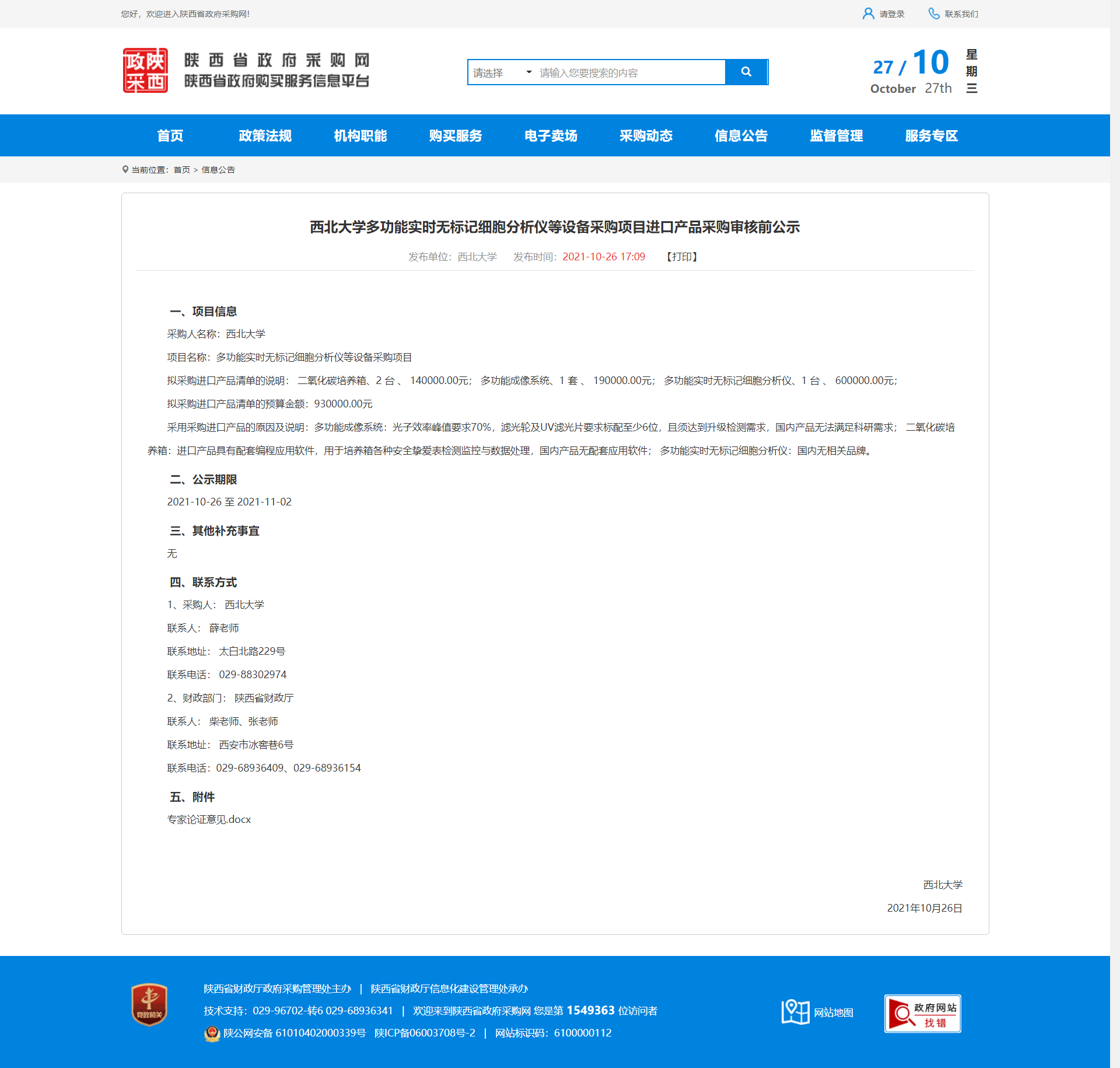 乐鱼网页版页面登录多功能实时无标记细胞分析仪等设备采购项目进口产品采购审核前公示 作者: 编辑:薛利娟 时间:2021-10-27 原公告地址:http://www.ccgp-shaanxi.gov.cn/notice/noticeDetail.do?noticeguid=8a85be337c20d0b4017cbbbd74c45f9b