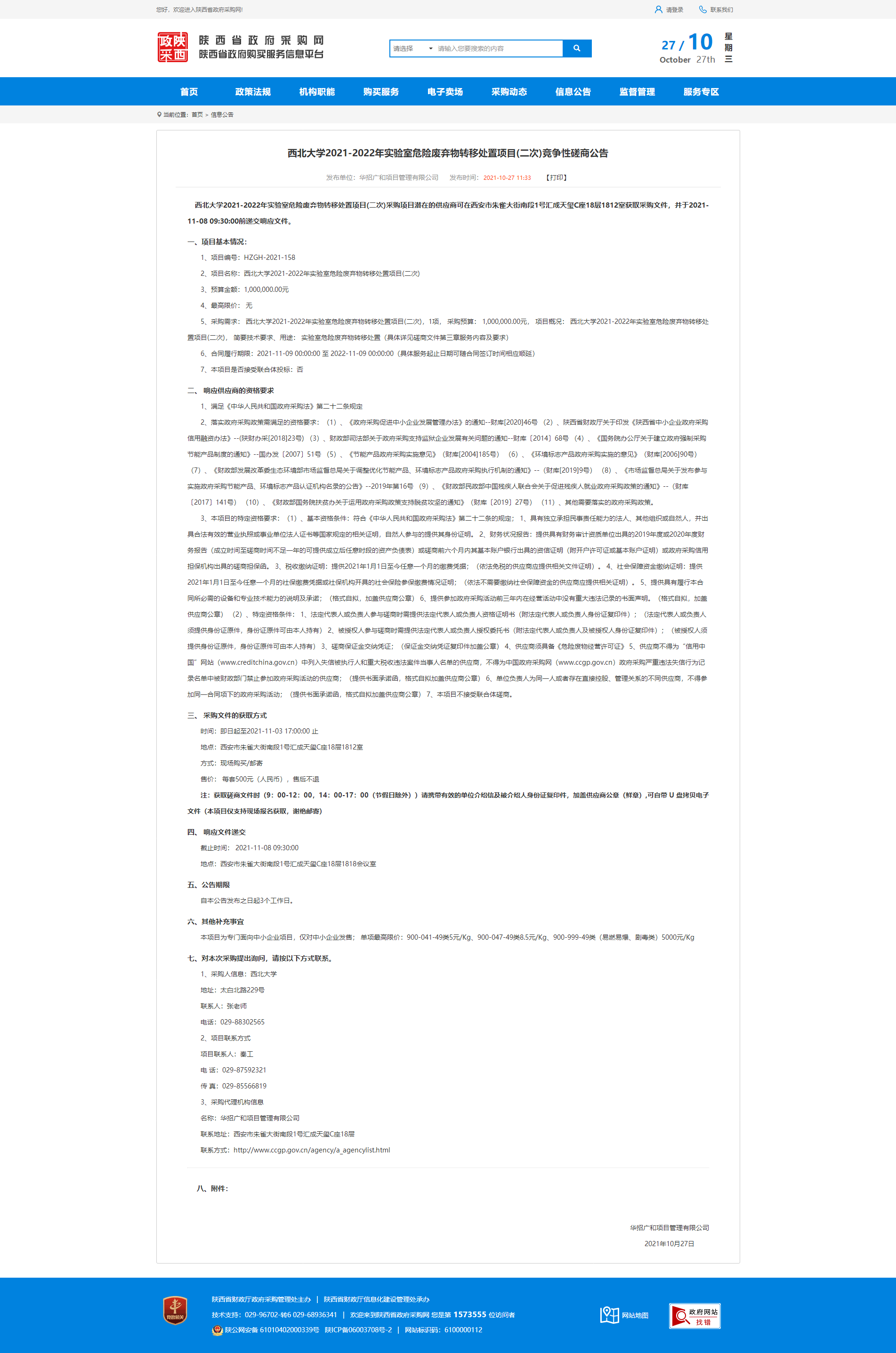 乐鱼网页版页面登录2021-2022年实验室危险废弃物转移处置项目(二次)竞争性磋商公告