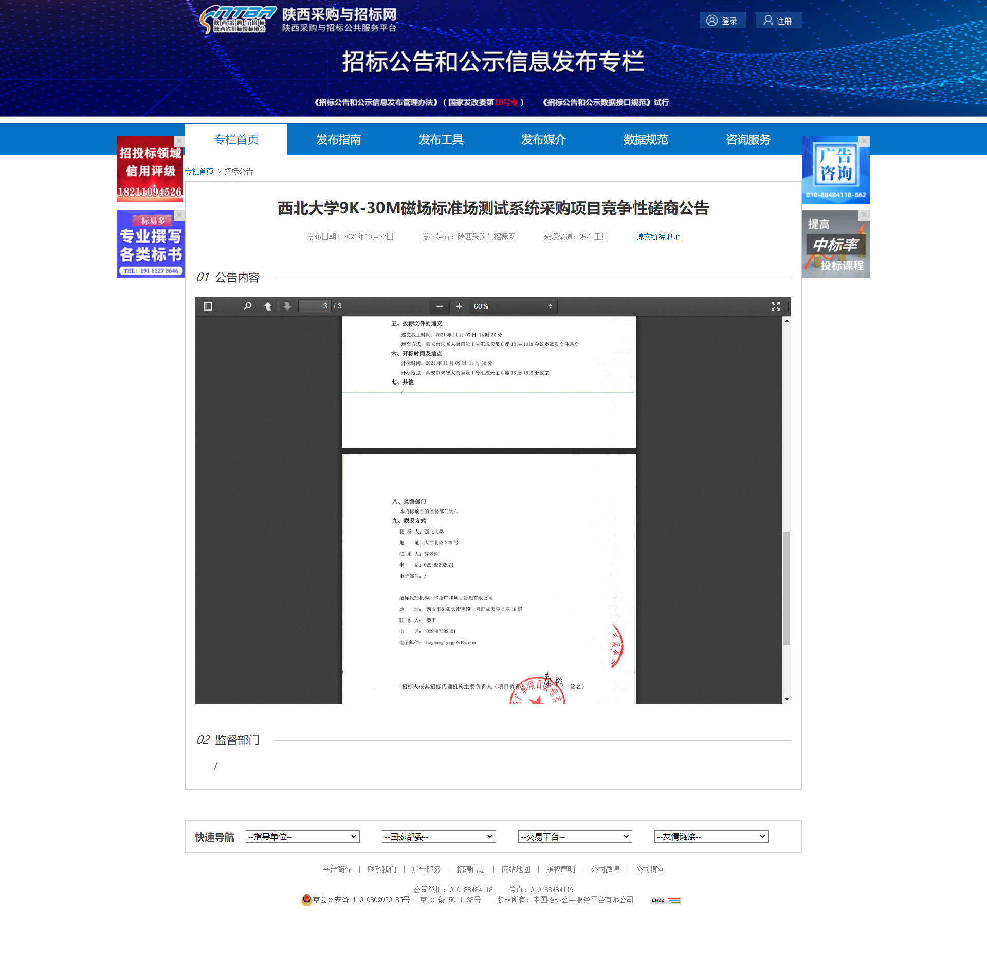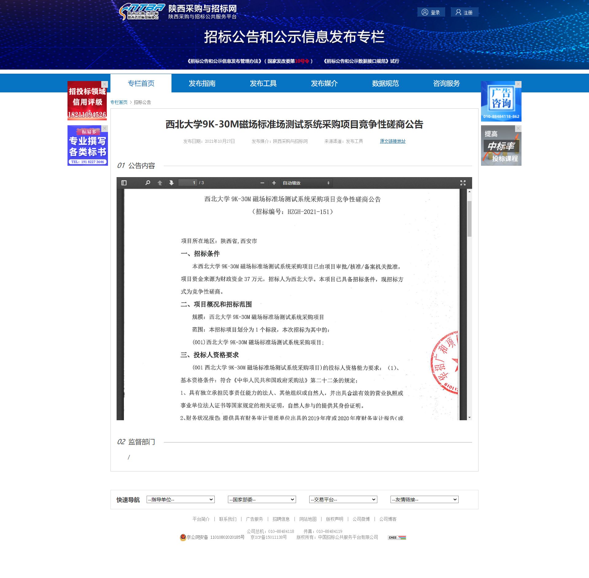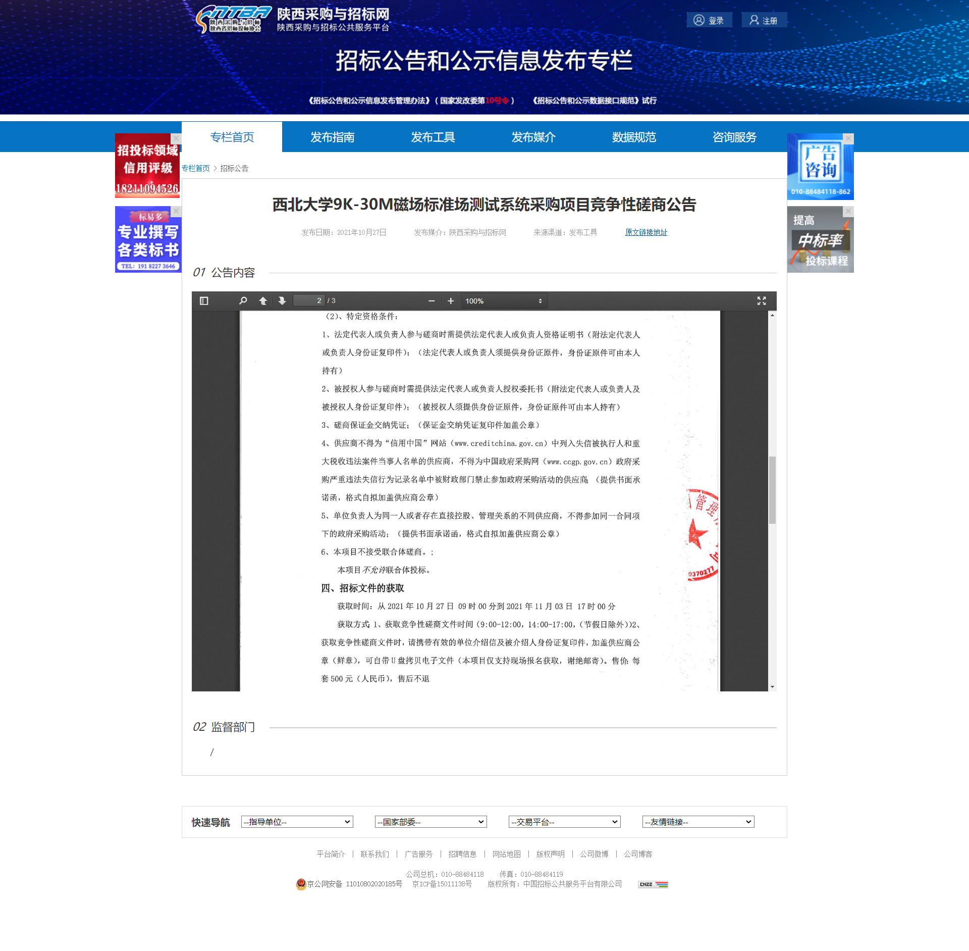 乐鱼网页版页面登录9K-30M磁场标准场测试系统采购项目竞争性磋商公告 作者: 编辑:薛利娟 时间:2021-10-27 原公告地址:http://bulletin.sntba.com/biddingBulletin/2021-10-27/357751.html