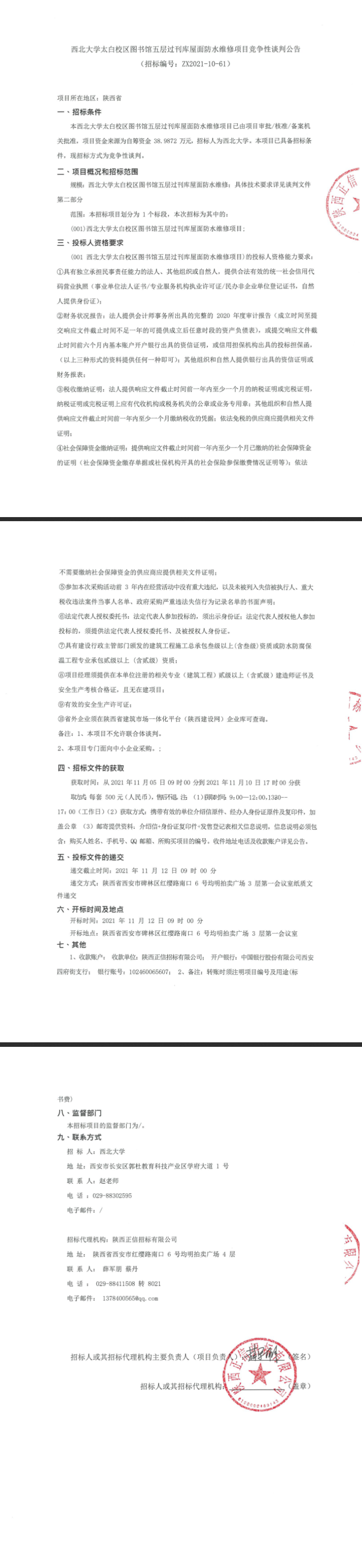 乐鱼网页版页面登录太白校区图书馆五层过刊库屋面防水维修项目竞争性谈判公告