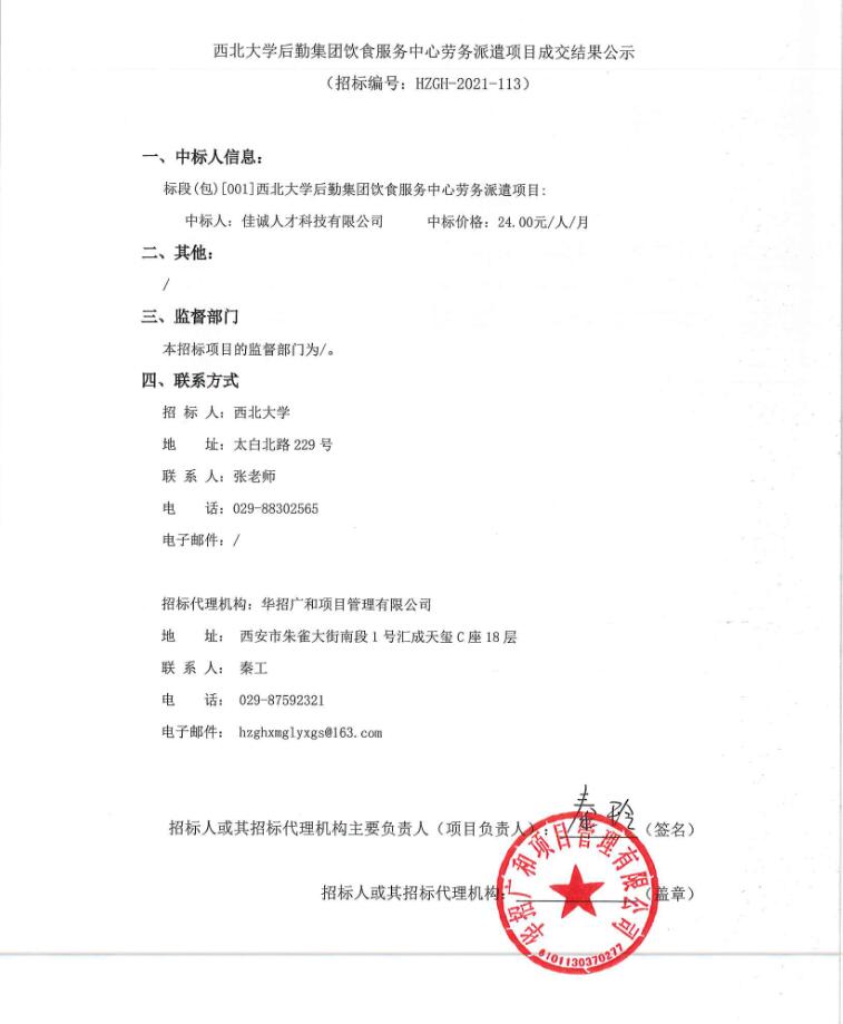 关于乐鱼网页版页面登录后勤集团饮食服务中心劳务派遣项目成交结果公告