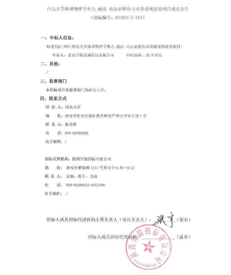 关于乐鱼网页版页面登录地球物理学重力.磁法.电法虚拟仿真实验系统建设项目成交结果公告