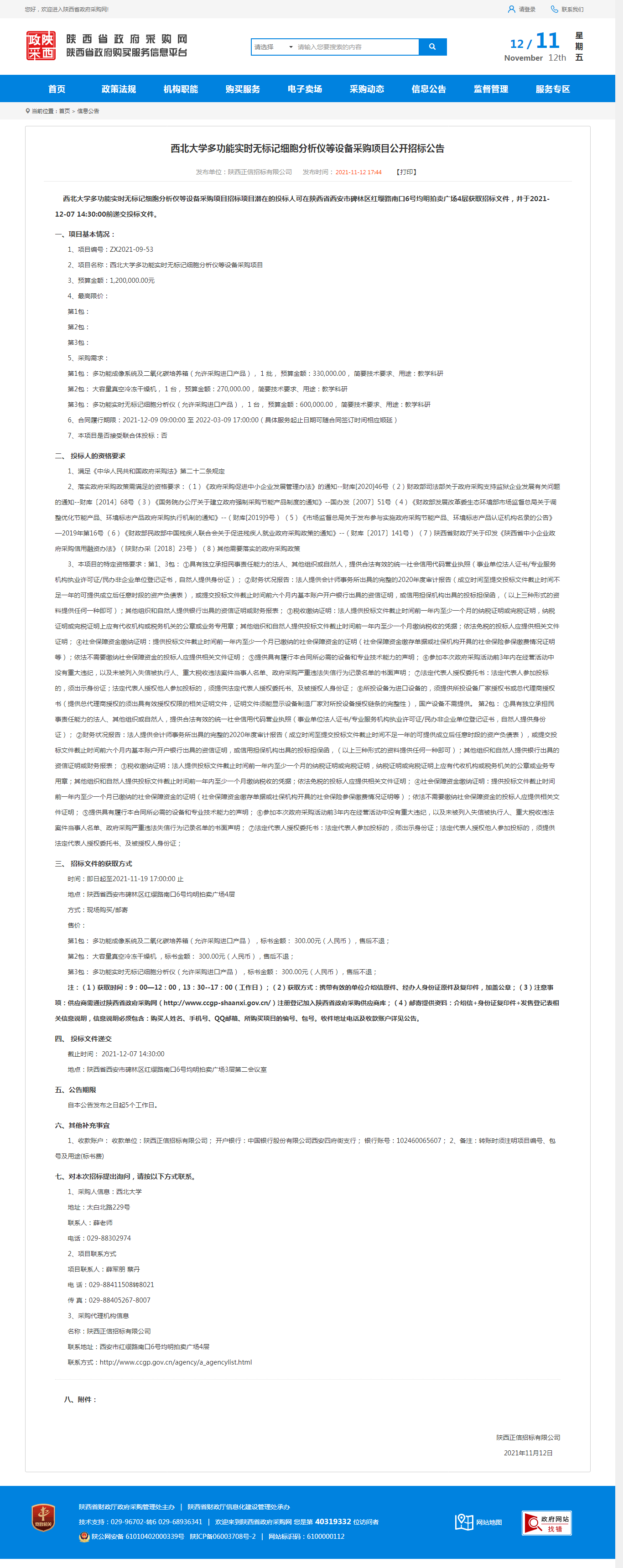 乐鱼网页版页面登录多功能实时无标记细胞分析仪等设备采购项目公开招标公告 作者: 编辑:薛利娟 时间:2021-11-12 原公告网址:http://www.ccgp-shaanxi.gov.cn/notice/noticeDetail.do?noticeguid=8a85be337cefc032017d13792f9f29a1