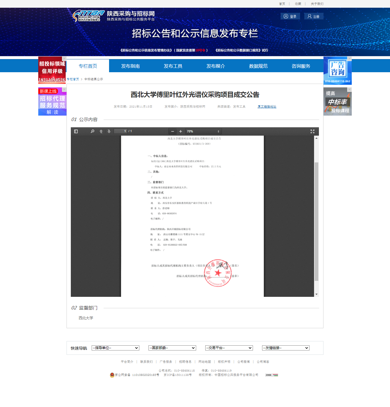 乐鱼网页版页面登录傅里叶红外光谱仪采购项目成交公告 作者: 编辑:薛利娟 时间:2021-11-15 原公告网址:http://bulletin.sntba.com/resultBulletin/2021-11-15/363971.html