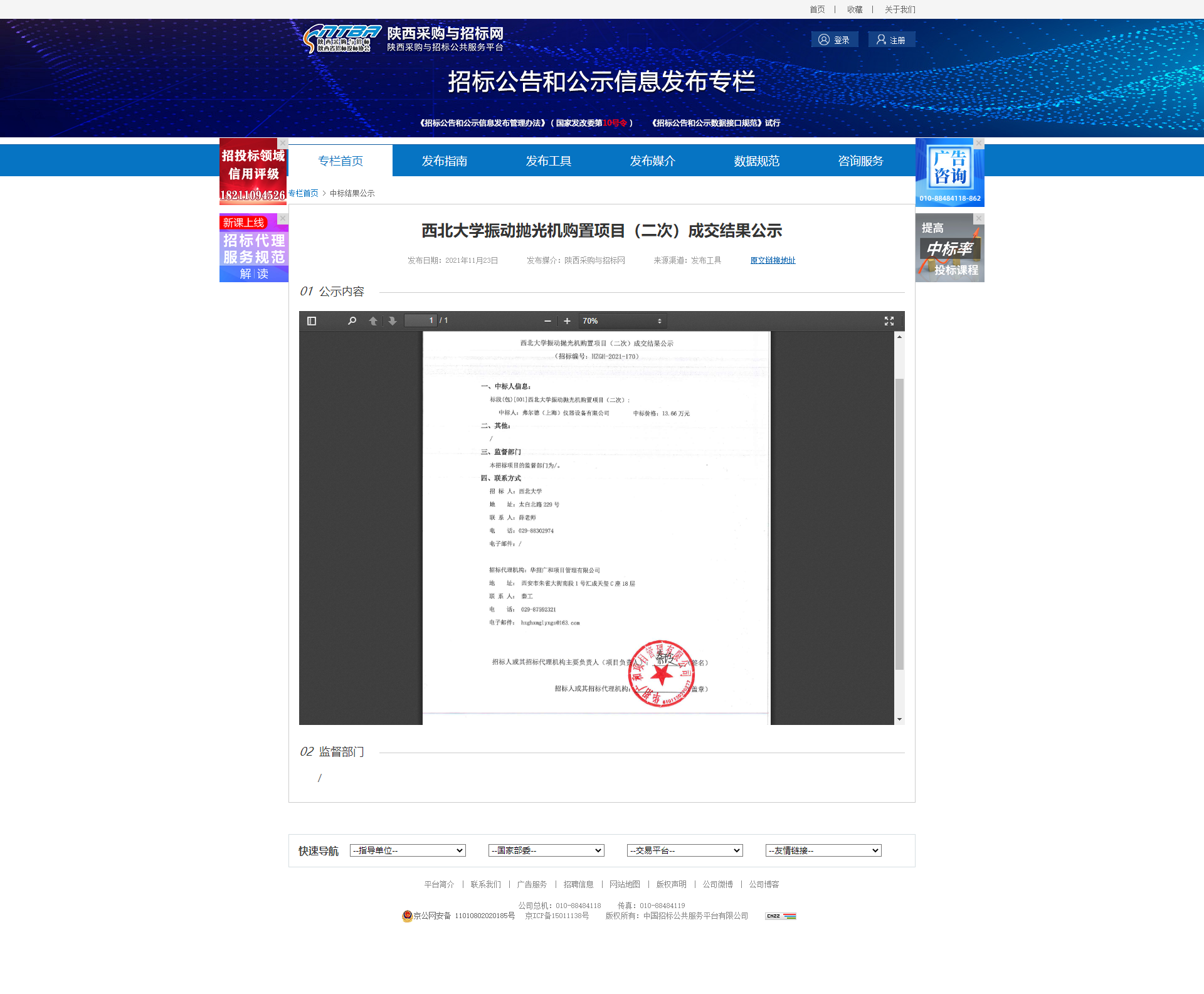 乐鱼网页版页面登录振动抛光机购置项目(二次)成交结果公示 作者: 编辑:薛利娟 时间:2021-11-24 原公告网址:http://bulletin.sntba.com/resultBulletin/2021-11-23/367274.html