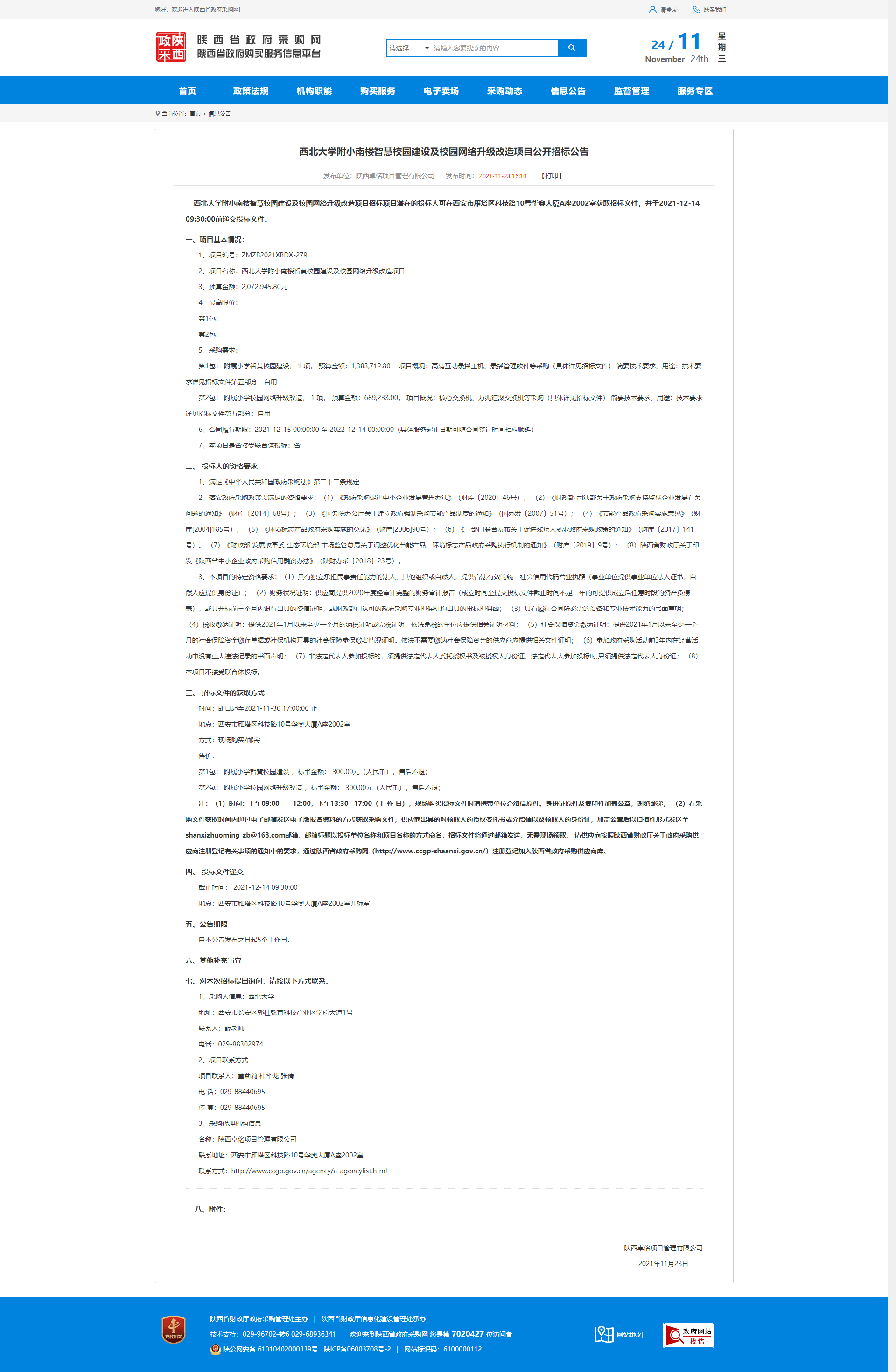 乐鱼网页版页面登录附小南楼智慧校园建设及校园网络升级改造项目公开招标公告 作者: 编辑:薛利娟 时间:2021-11-24 原公告网址:http://www.ccgp-shaanxi.gov.cn/notice/noticeDetail.do?noticeguid=8a85be347d2d6f8d017d4af0eb515dc6