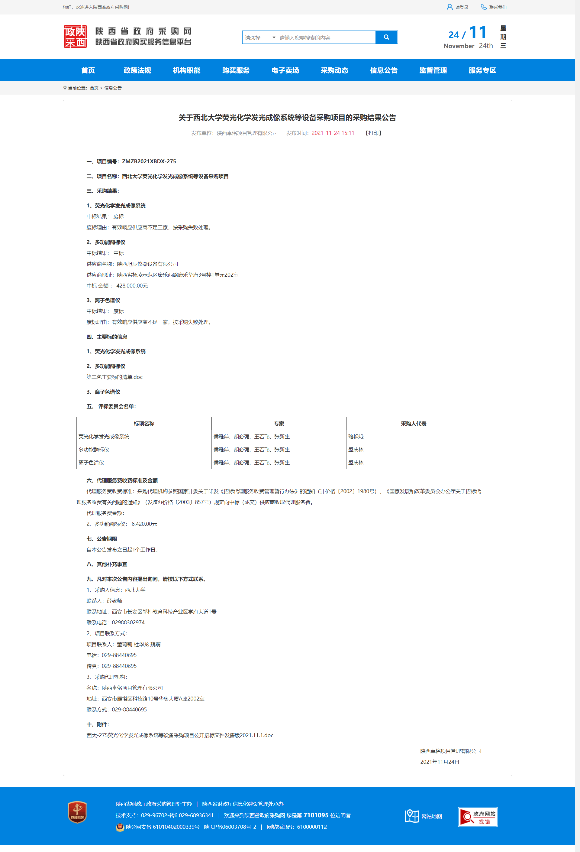 关于乐鱼网页版页面登录荧光化学发光成像系统等设备采购项目的采购结果公告 作者: 编辑:薛利娟 时间:2021-11-24 原公告网址:http://www.ccgp-shaanxi.gov.cn/notice/noticeDetail.do?noticeguid=8a85be347d2d6f8d017d50c64ee42710