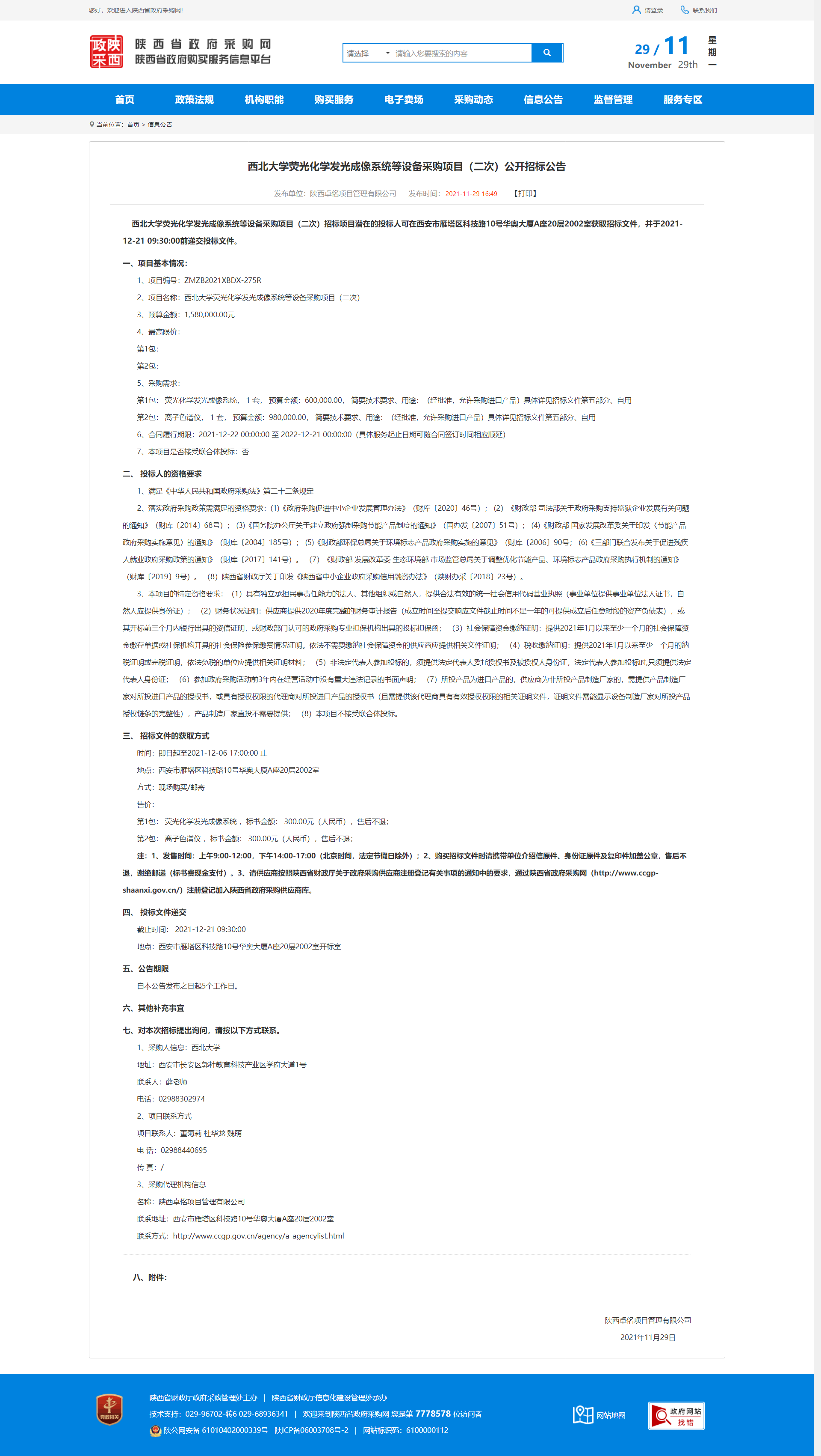 乐鱼网页版页面登录荧光化学发光成像系统等设备采购项目(二次)公开招标公告 作者: 编辑:薛利娟 时间:2021-11-29 原公告网址:http://www.ccgp-shaanxi.gov.cn/notice/noticeDetail.do?noticeguid=8a85be327d6a73bf017d6ab12dfa081d
