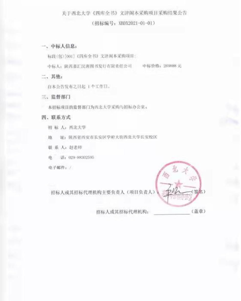 关于乐鱼网页版页面登录《四库全书》文津阁本采购项目成交结果公告