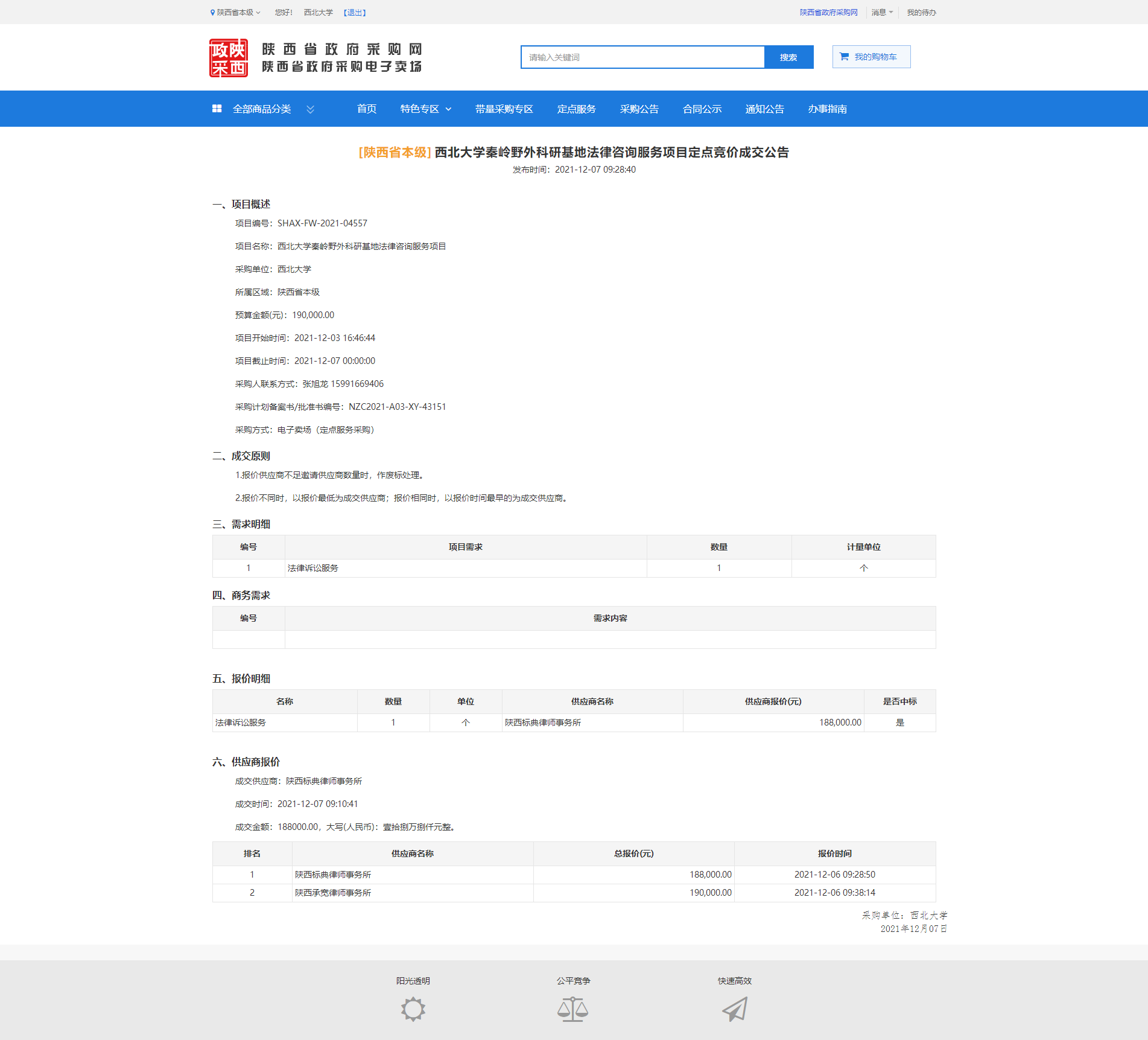关于乐鱼网页版页面登录秦岭野外科研基地法律咨询服务项目定点竞价成交公告