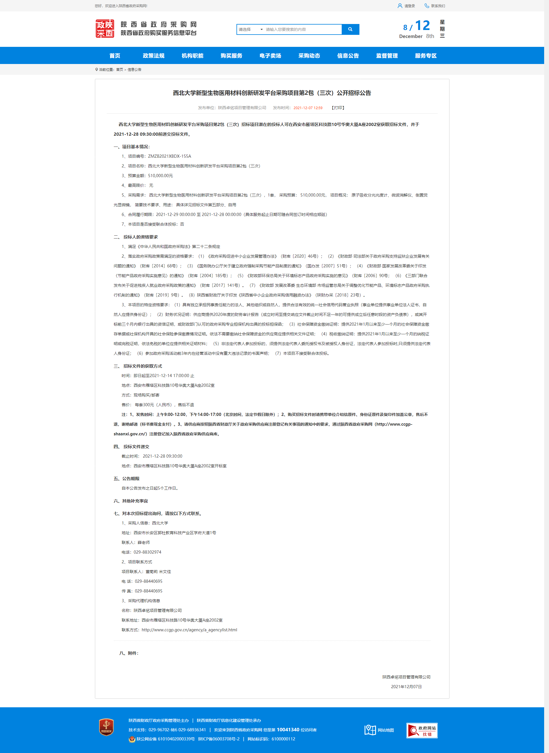 乐鱼网页版页面登录新型生物医用材料创新研发平台采购项目第2包(三次)公开招标公告 作者: 编辑:薛利娟 时间:2021-12-08 原公告链接:http://www.ccgp-shaanxi.gov.cn/notice/noticeDetail.do?noticeguid=8a85be347d6a75c8017d92f597c94e2d