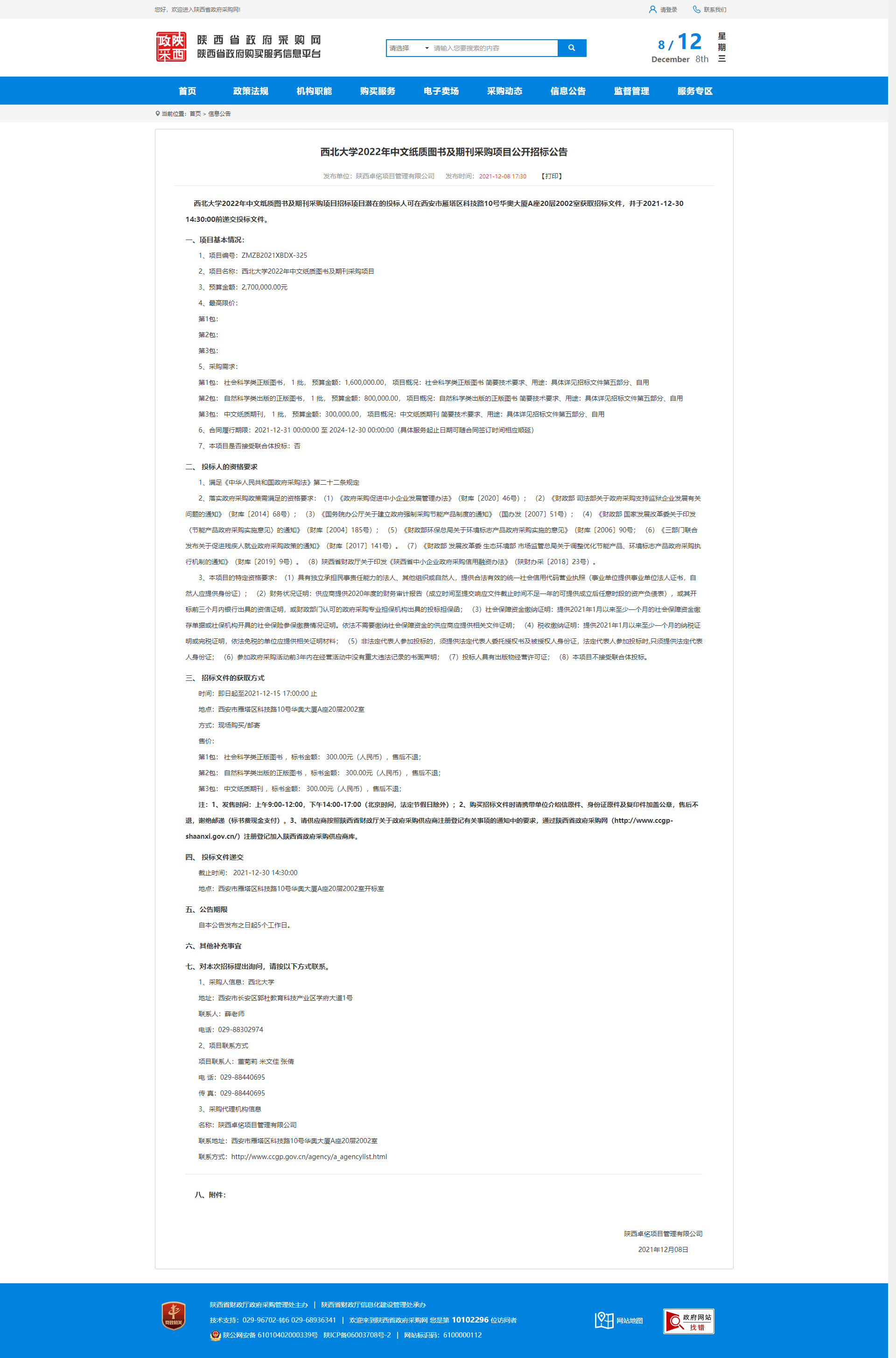 乐鱼网页版页面登录2022年中文纸质图书及期刊采购项目公开招标公告 作者: 编辑:薛利娟 时间:2021-12-08 原公告链接:http://www.ccgp-shaanxi.gov.cn/notice/noticeDetail.do?noticeguid=8a85be317d6a7607017d991af3612a99