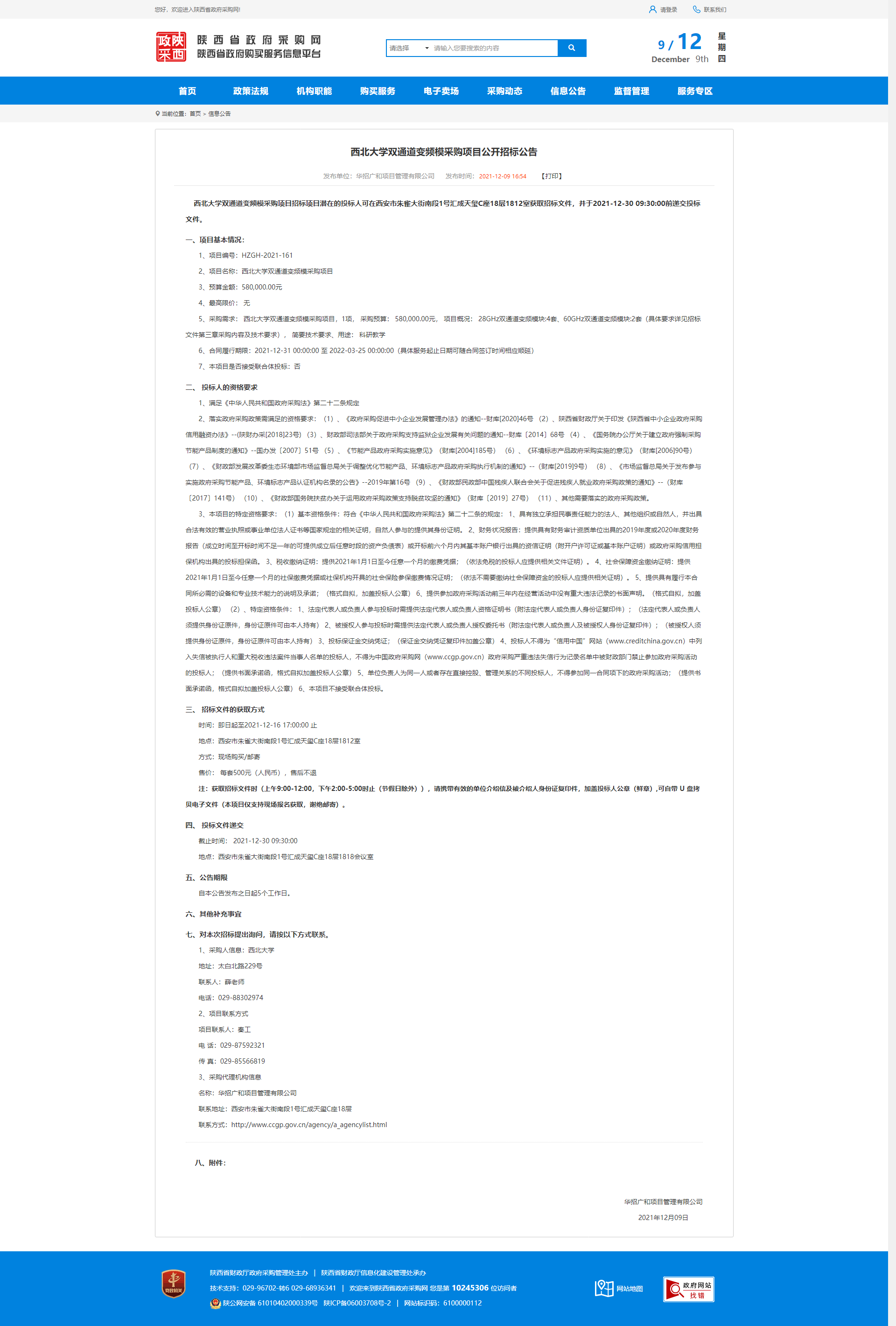 乐鱼网页版页面登录双通道变频模采购项目公开招标公告 作者: 编辑:薛利娟 时间:2021-12-10 原公告链接:http://www.ccgp-shaanxi.gov.cn/notice/noticeDetail.do?noticeguid=8a85be317d6a7607017d9e5c471d71a6