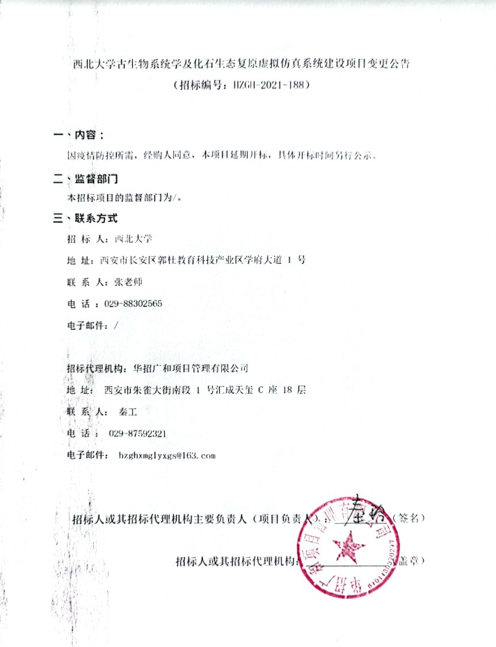 乐鱼网页版页面登录古生物系统学及化石生态复原虚拟仿真系统建设项目变更公告