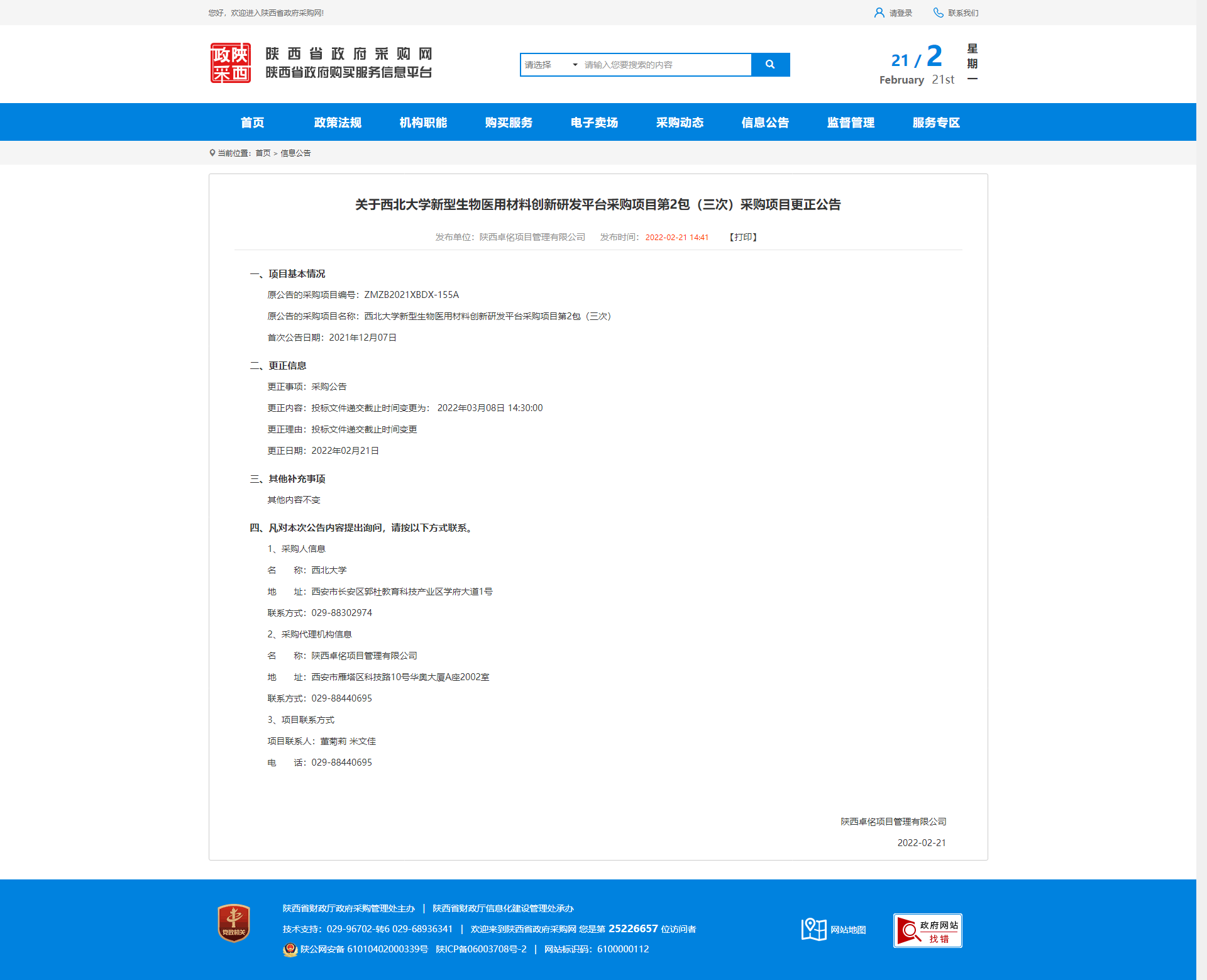 关于乐鱼网页版页面登录新型生物医用材料创新研发平台采购项目第2包(三次)采购项目更正公告 作者: 编辑:薛利娟 时间:2022-02-21 原公告链接:http://www.ccgp-shaanxi.gov.cn/notice/noticeDetail.do?noticeguid=8a85be317ee7907d017f1a9fc1d146e6